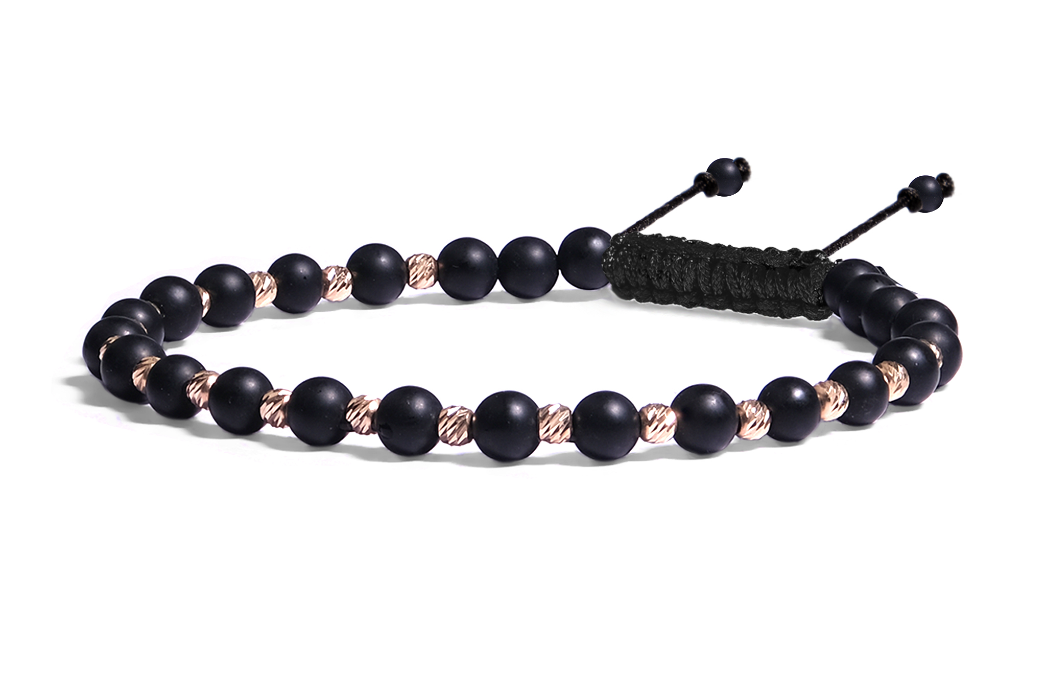 Bratara Pardo realizata cu snur si pietre semipretioase Onix Negru Sfera de 4 mm si sfere striate din Aur 585 de 14 Karate