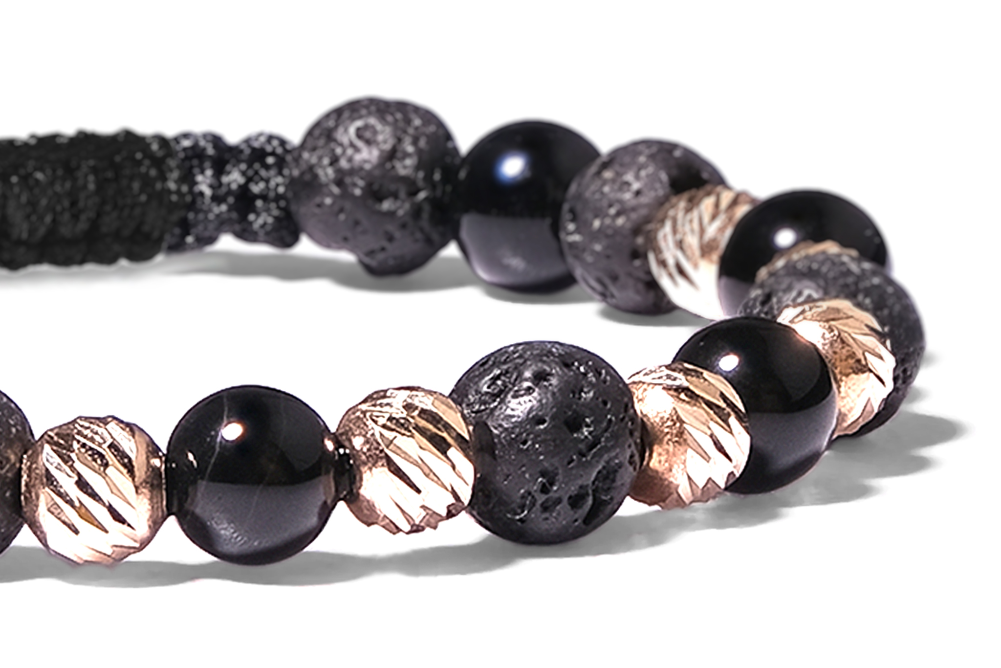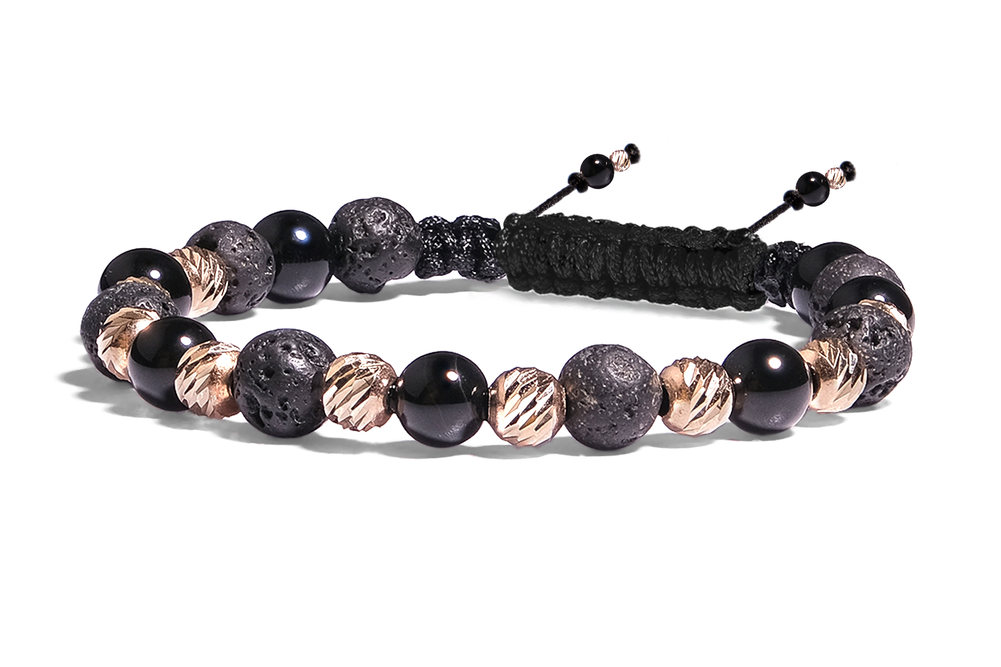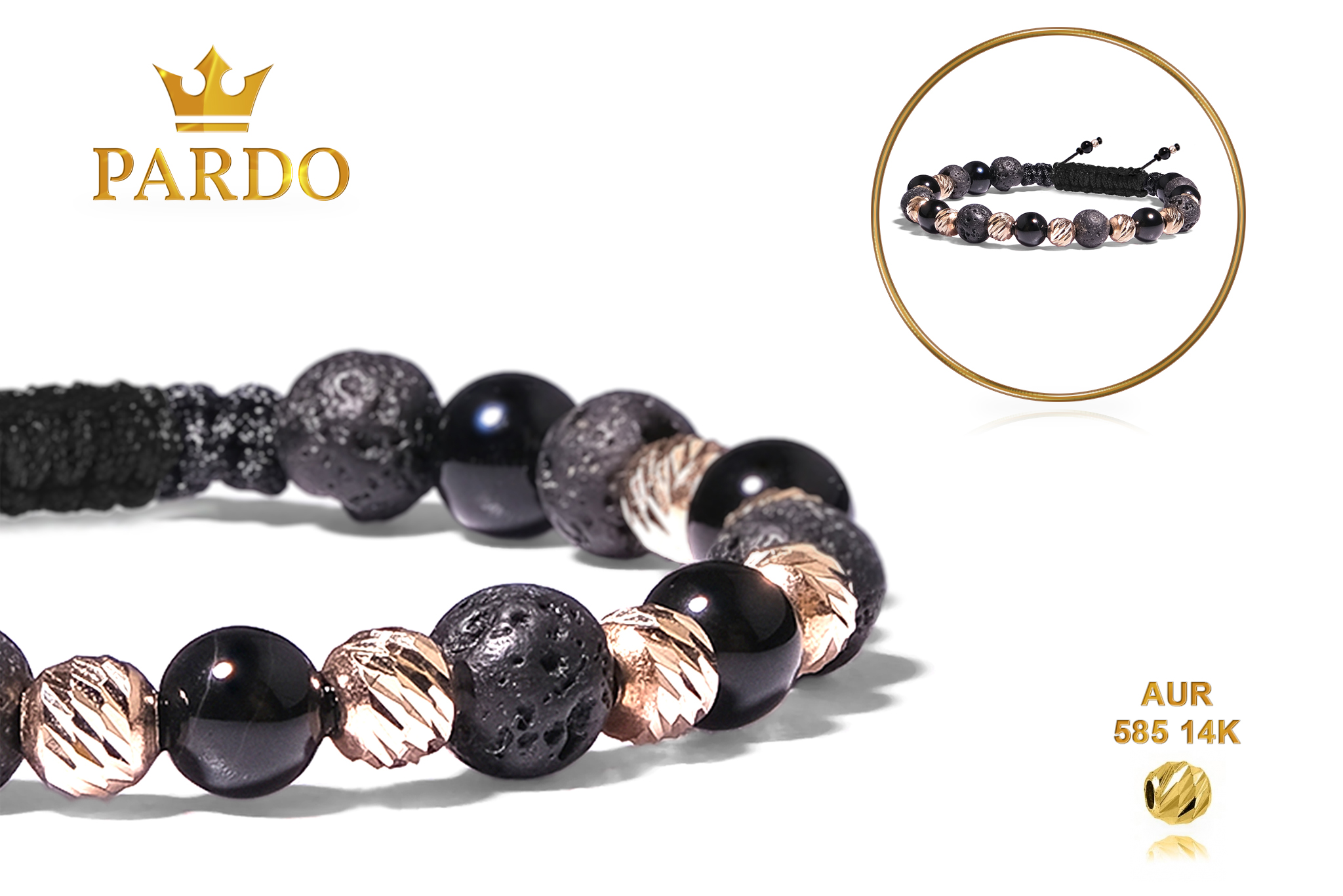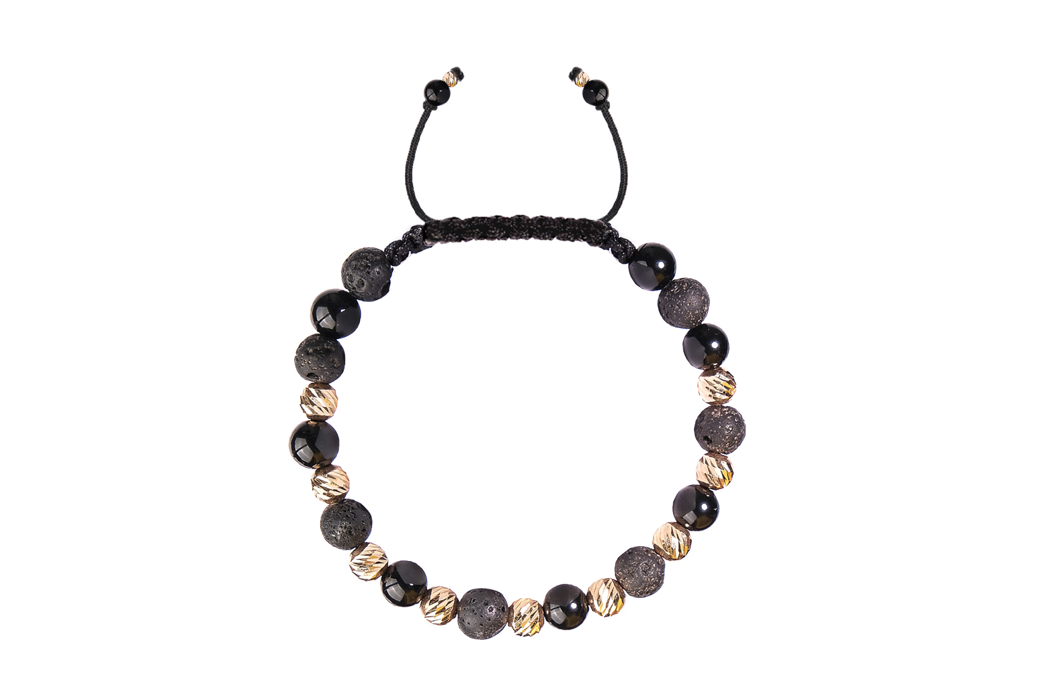 Bratara Pardo realizata cu snur si pietre semipretioase Onix Negru Sfera de 6 mm si sfere striate din Aur 585 de 14 Karate