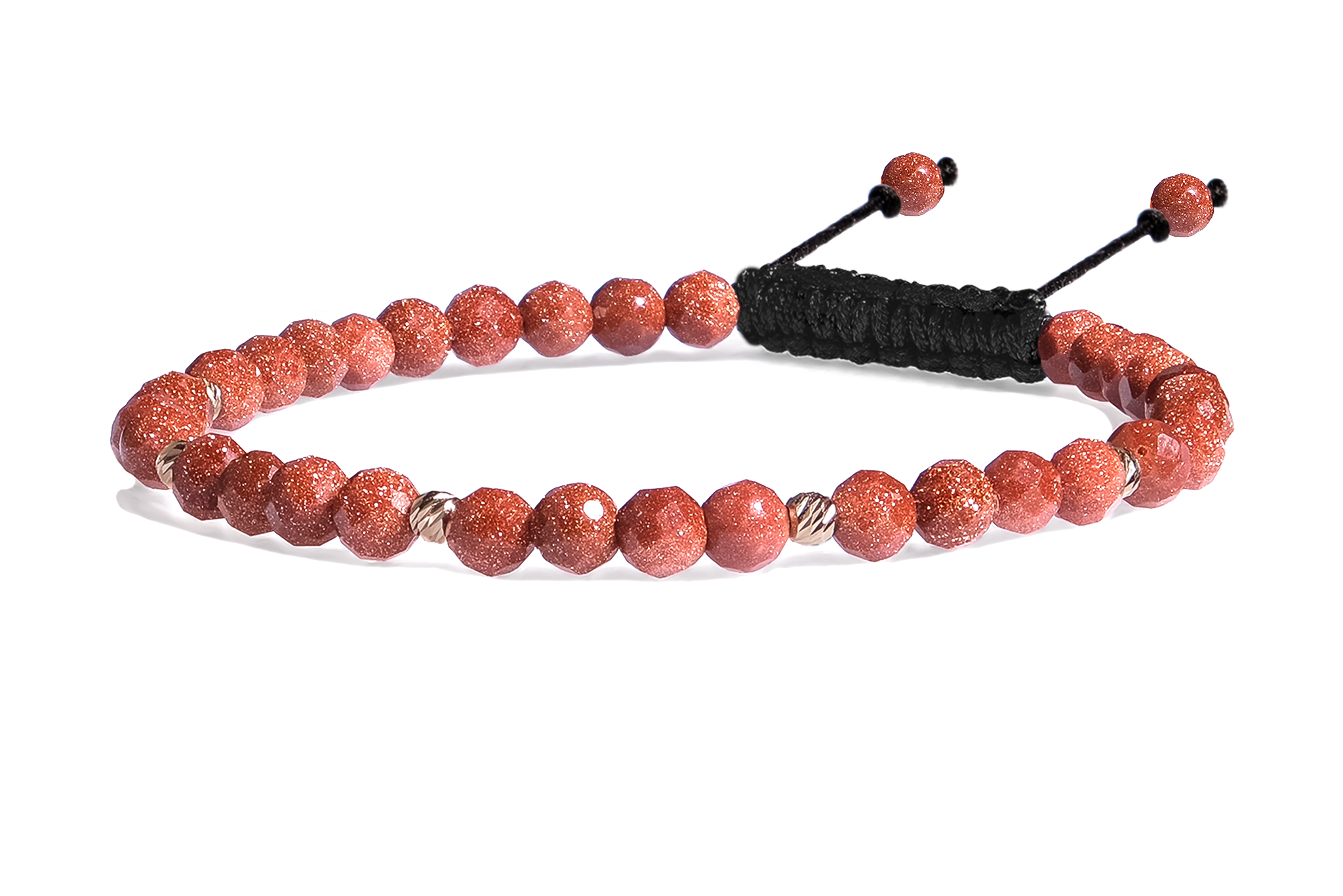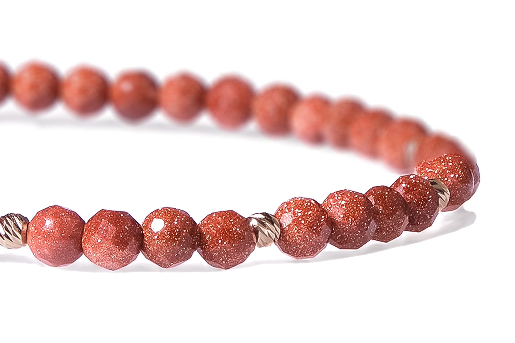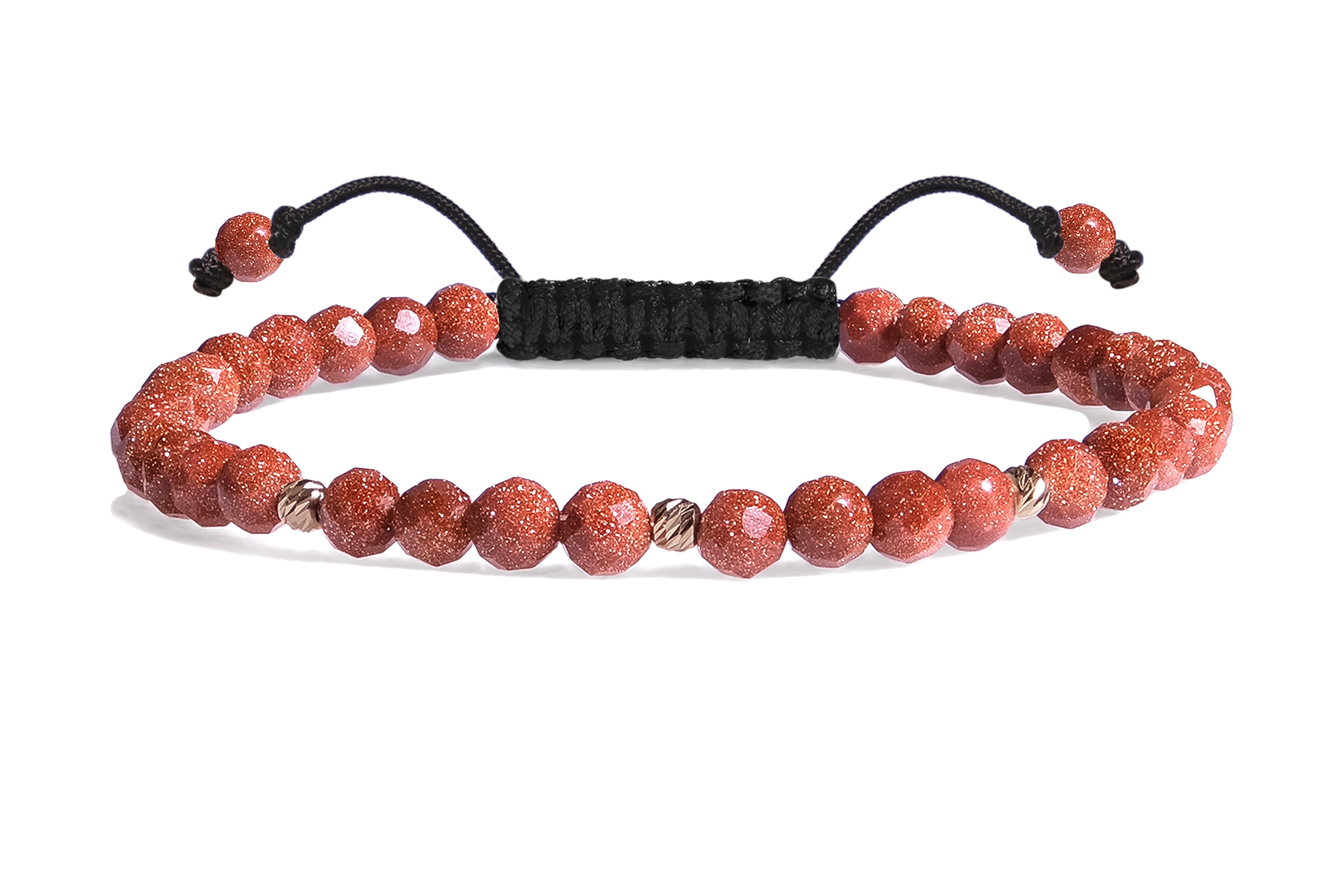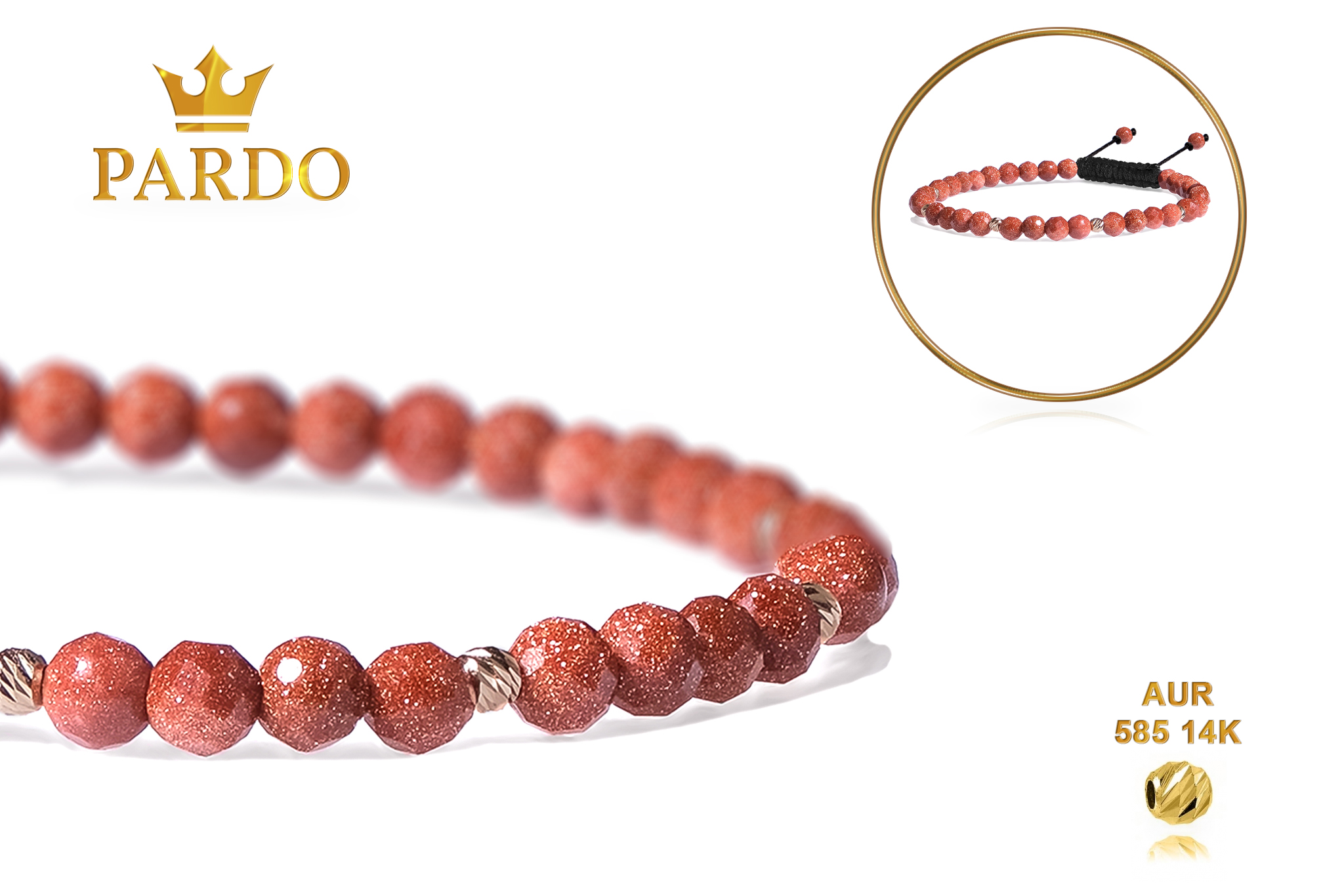 Bratara Pardo realizata cu snur si pietre semipretioase Piatra Soarelui Maro Fatetat de 4 mm si sfere striate din Aur 585 de 14 Karate