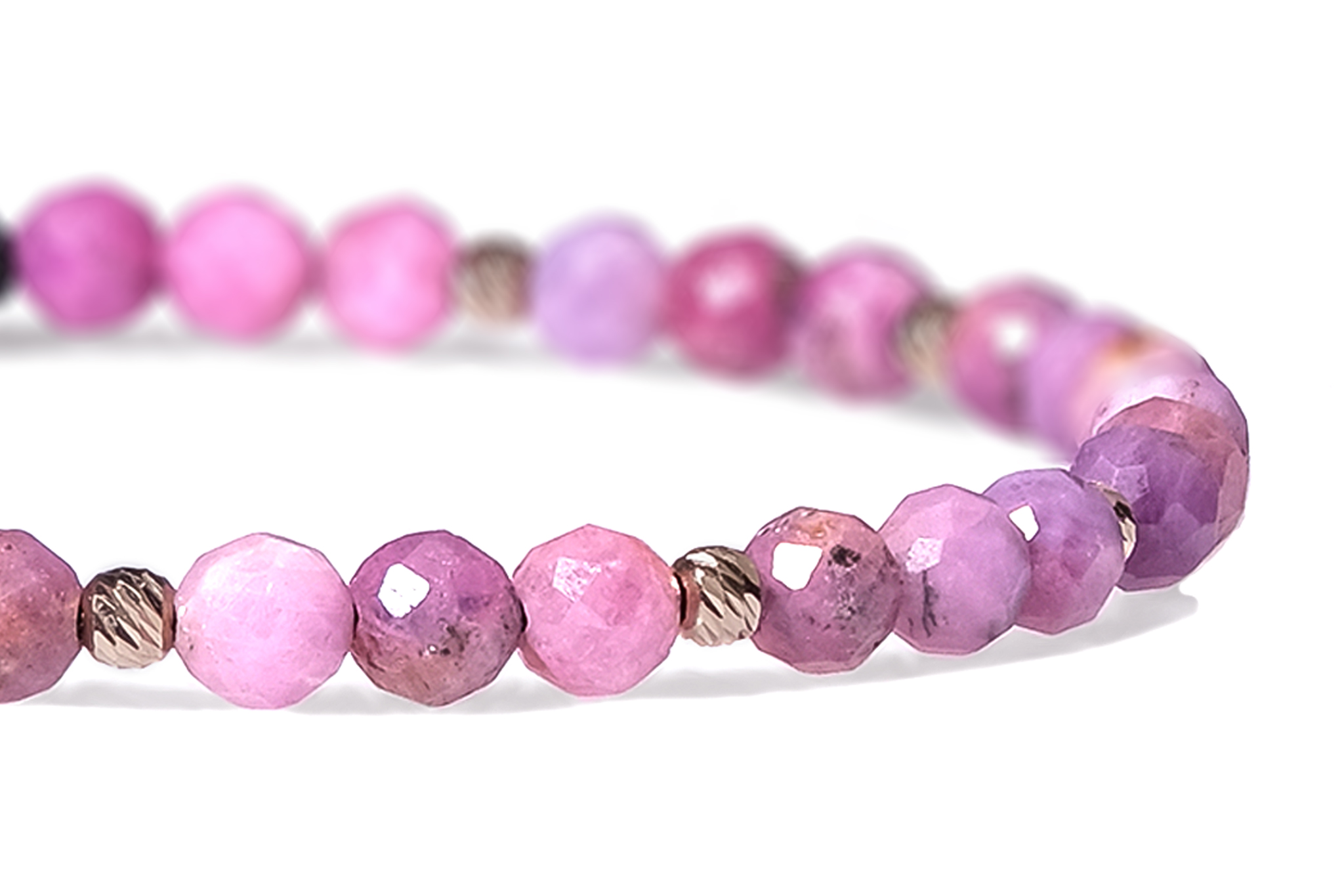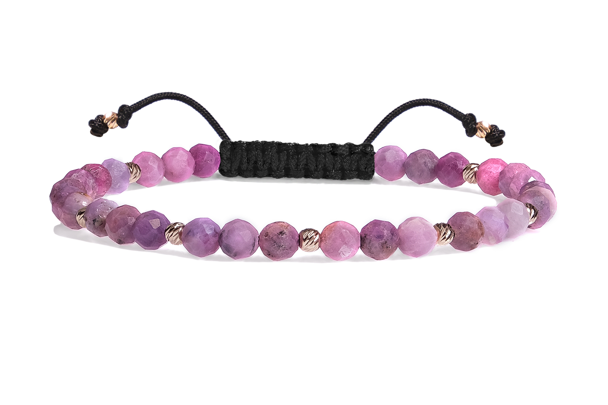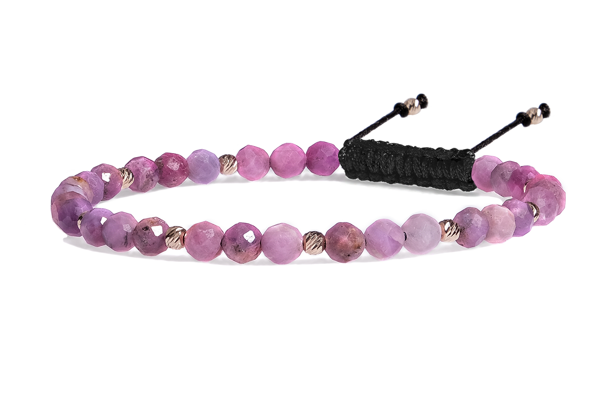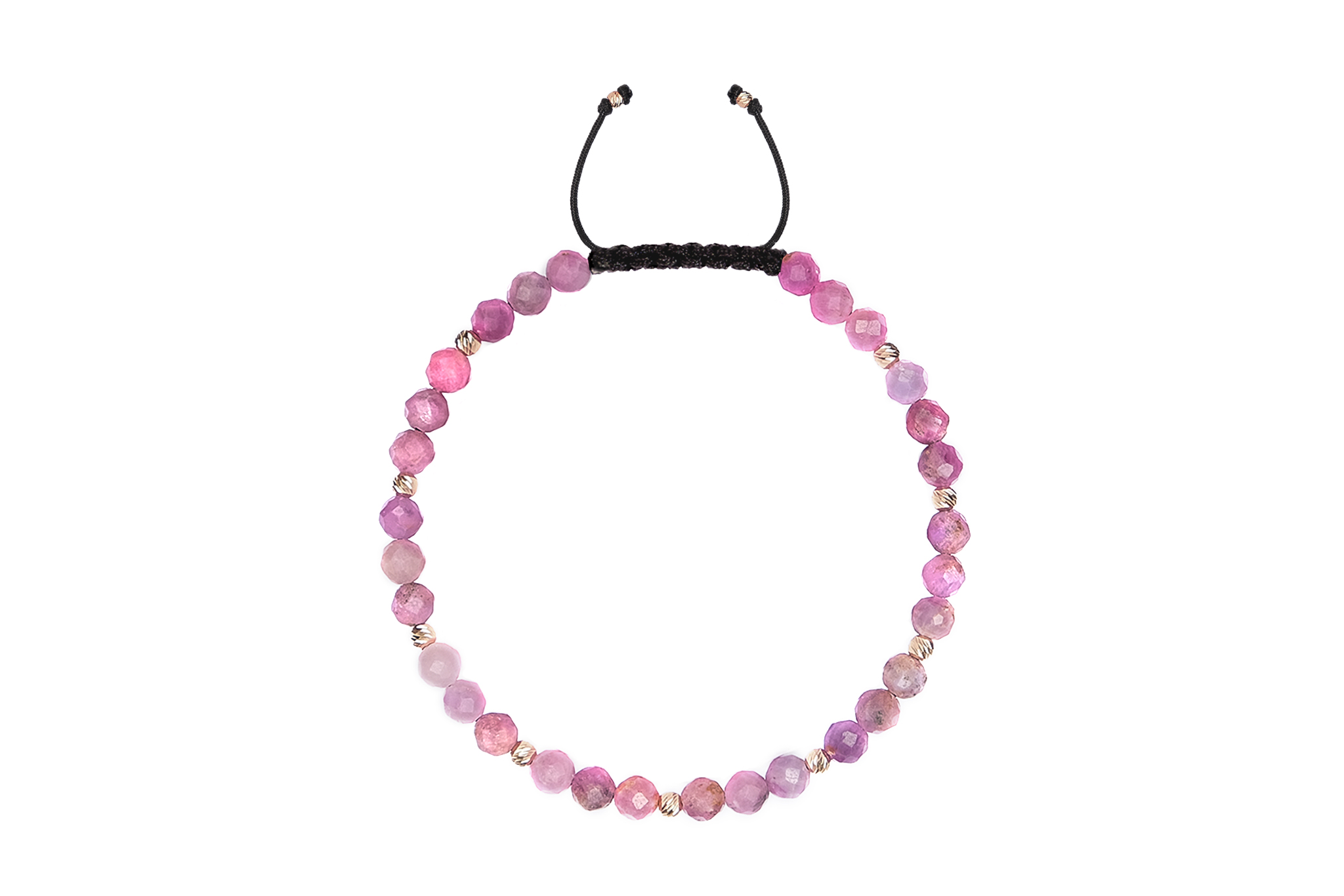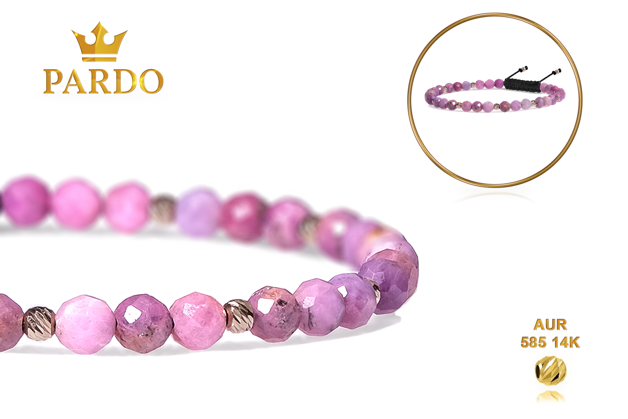 Bratara Pardo realizata cu snur si pietre semipretioase Rubin Roz Fatetata de 4 mm si sfere striate din Aur 585 de 14 Karate