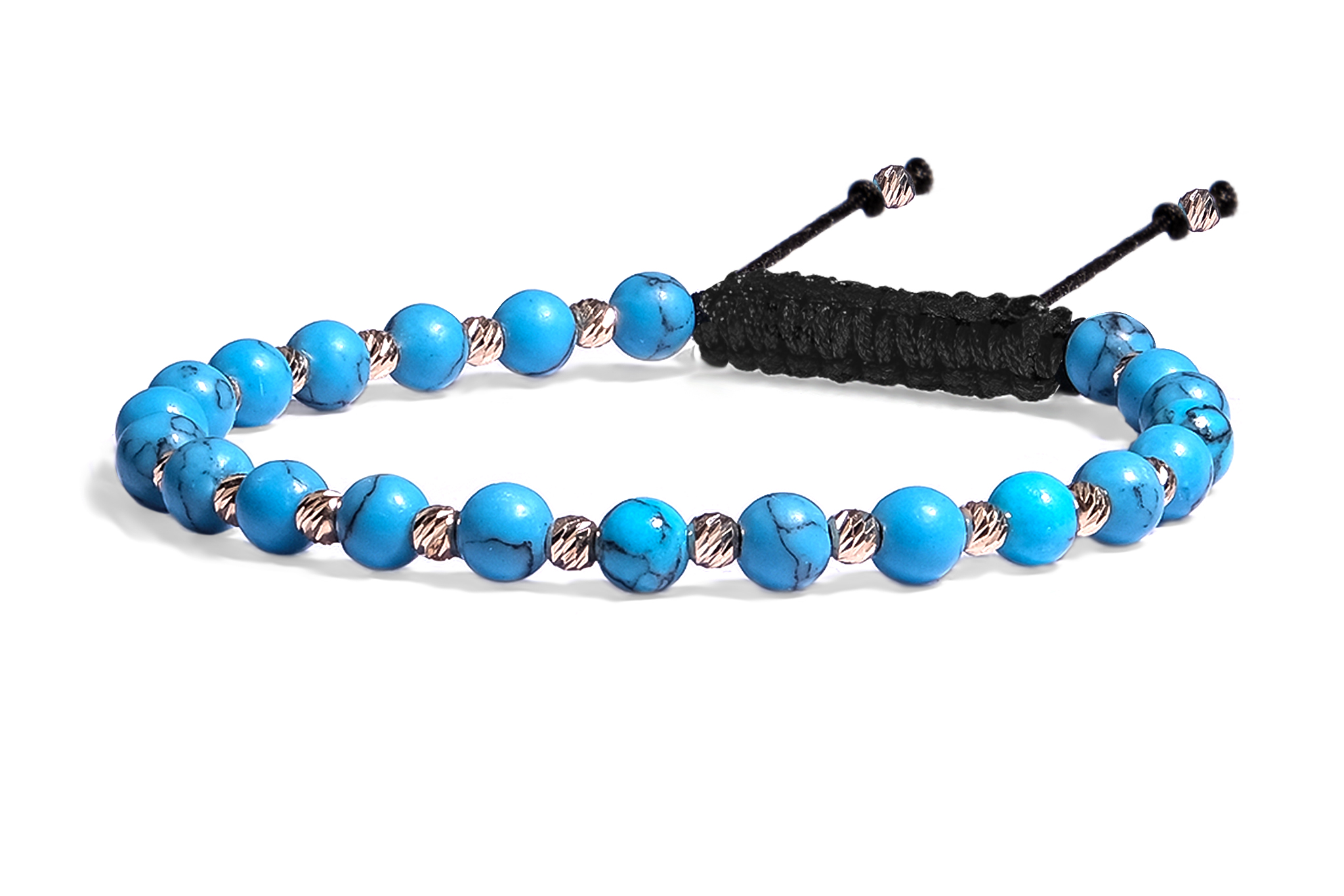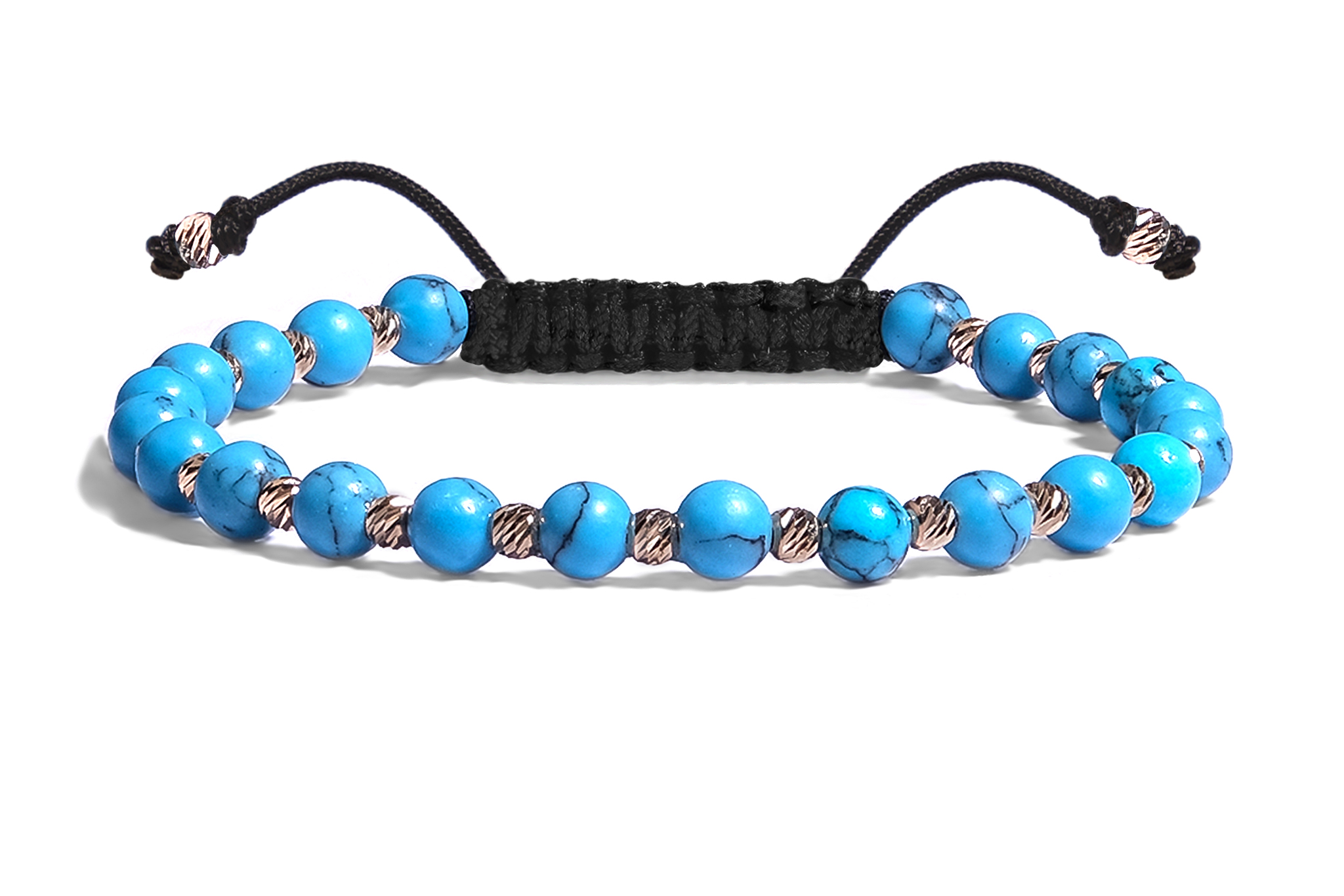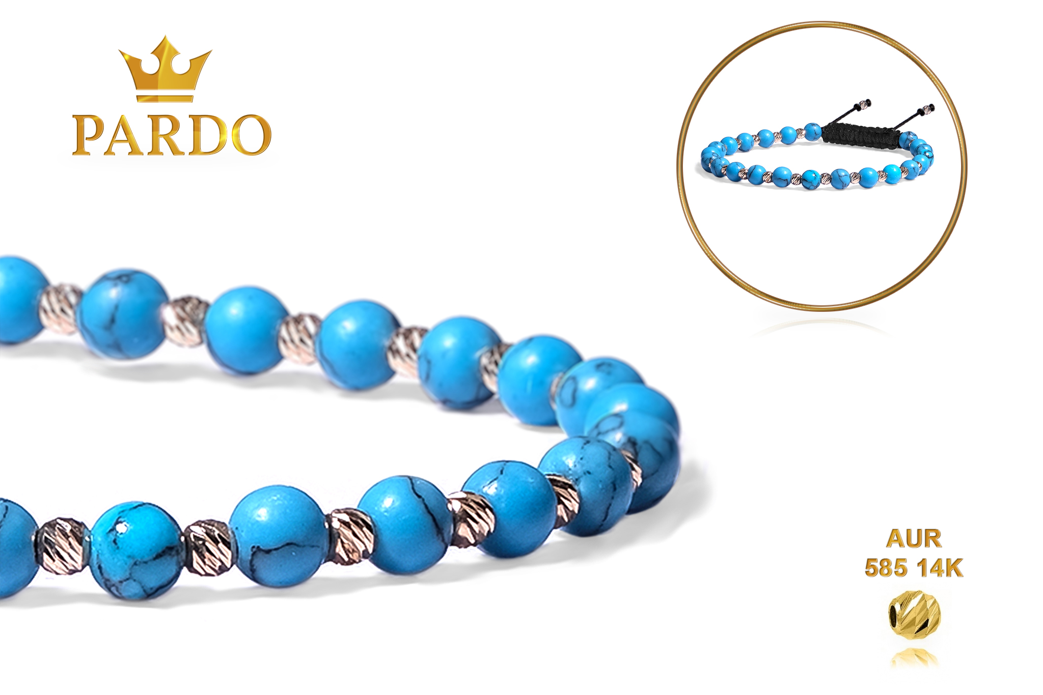 Bratara Pardo realizata cu snur si pietre semipretioase Turcoaz Reconstituit Turcoaz Sfera de 4 mm si sfere striate din Aur 585 de 14 Karate