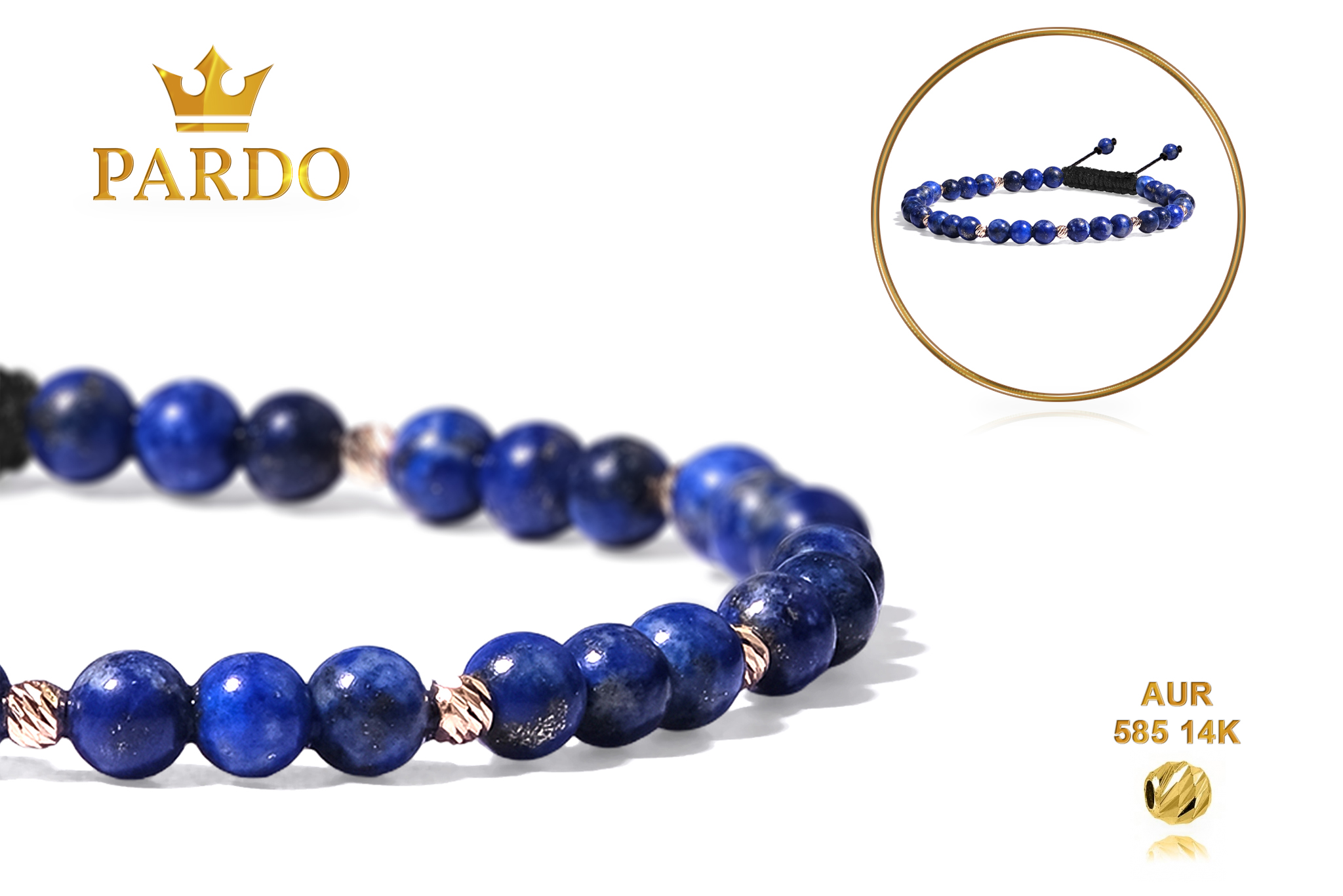 Întreaga colecție de brățări din aur este realizată cu aur de 14 Karate, aur de import Italia, calitatea aurului fiind astfel la un nivel superior. Aurul de 14 Karate folosit pentru colecțiile Pardo Gold este verificat certificat de organele abilitate prin autorizația emisă, astfel acesta corespunde în proportie de 94% din punct de vedere al caratajului cât și al gramajului.