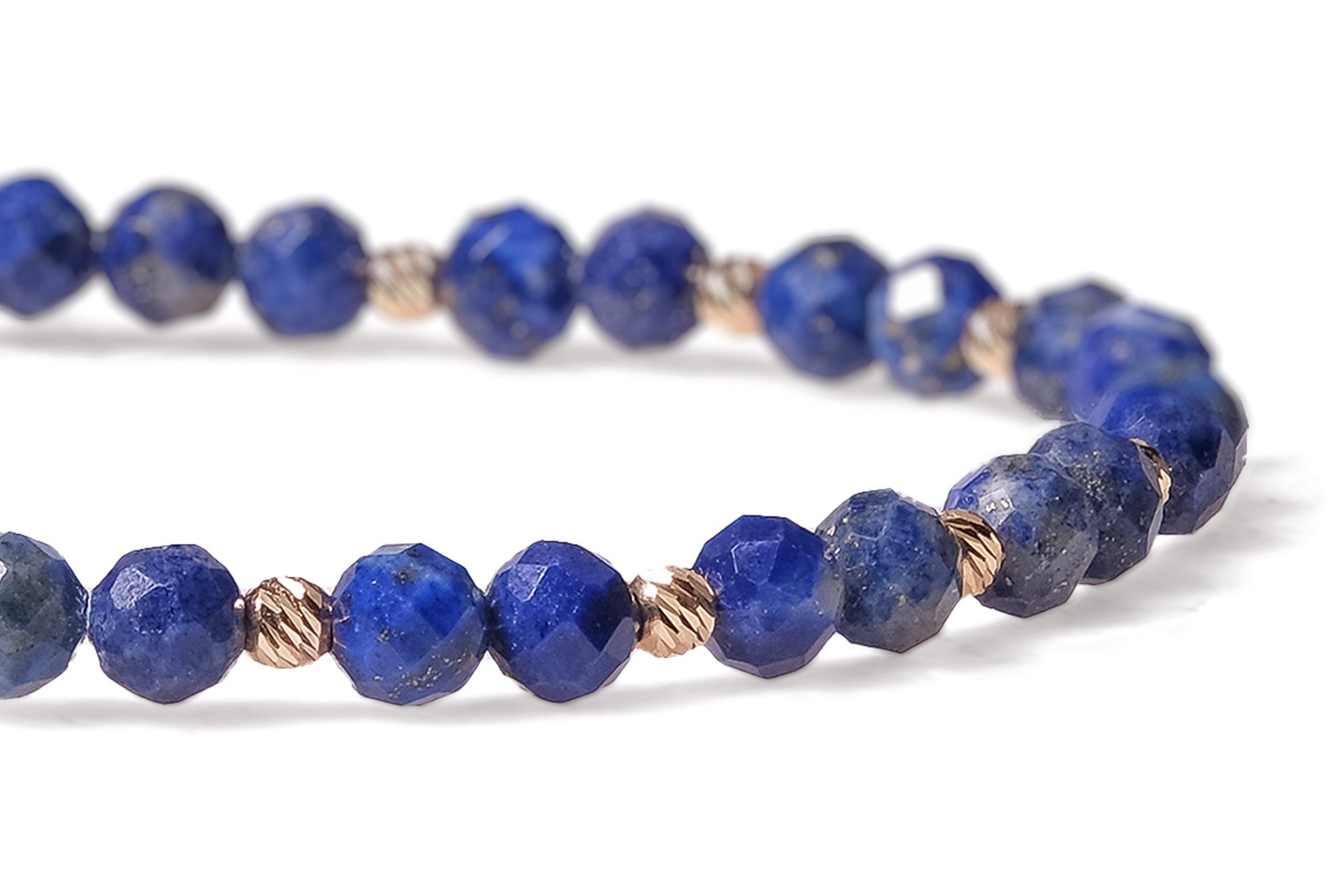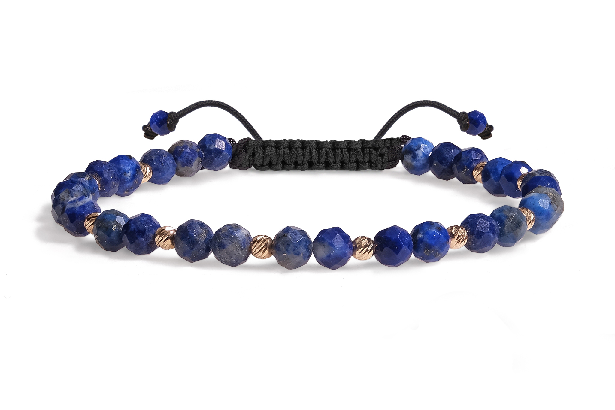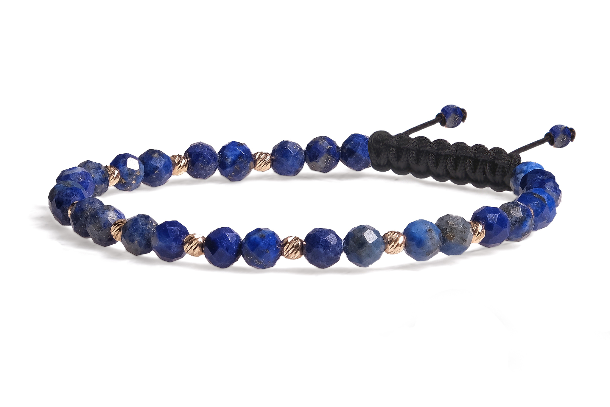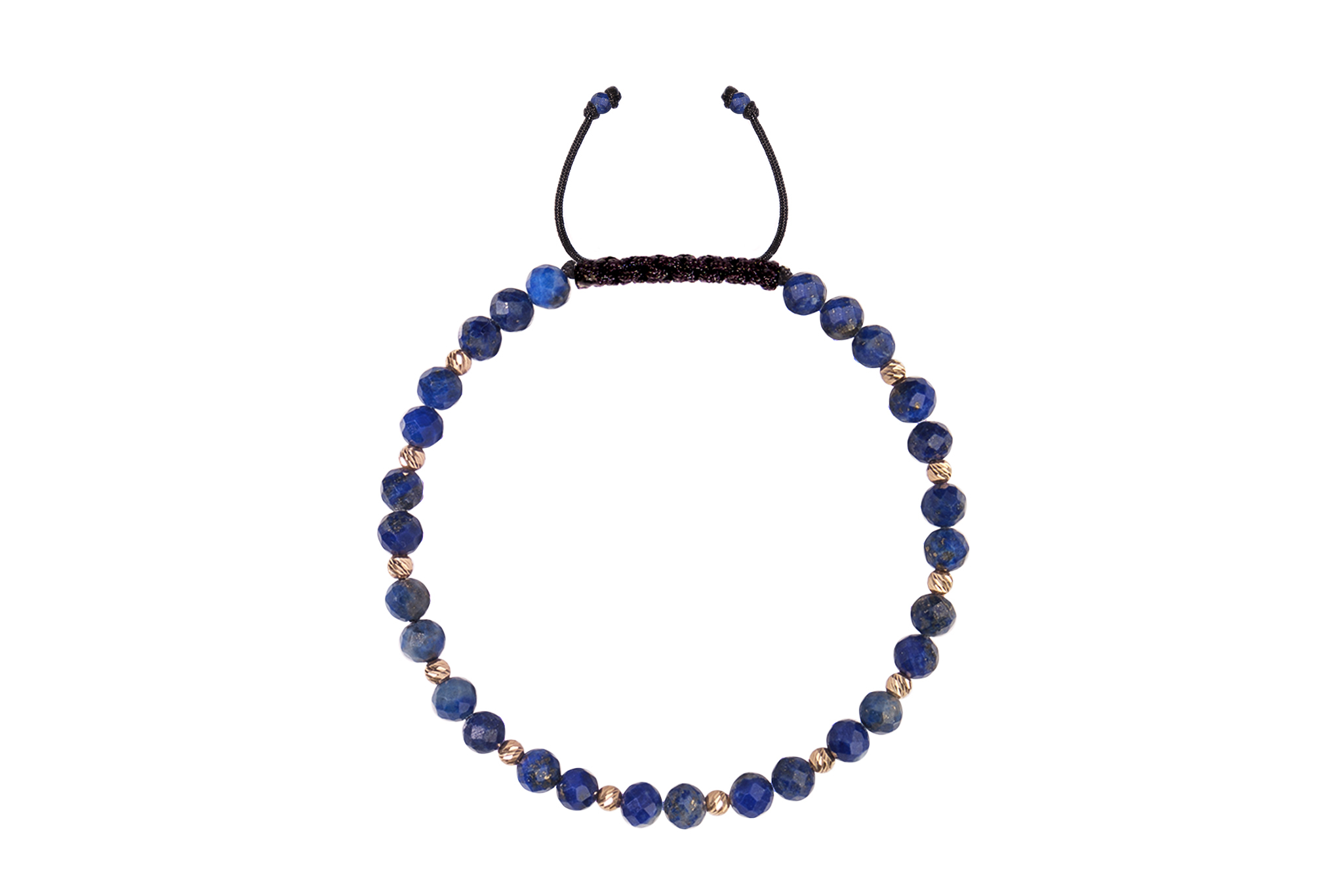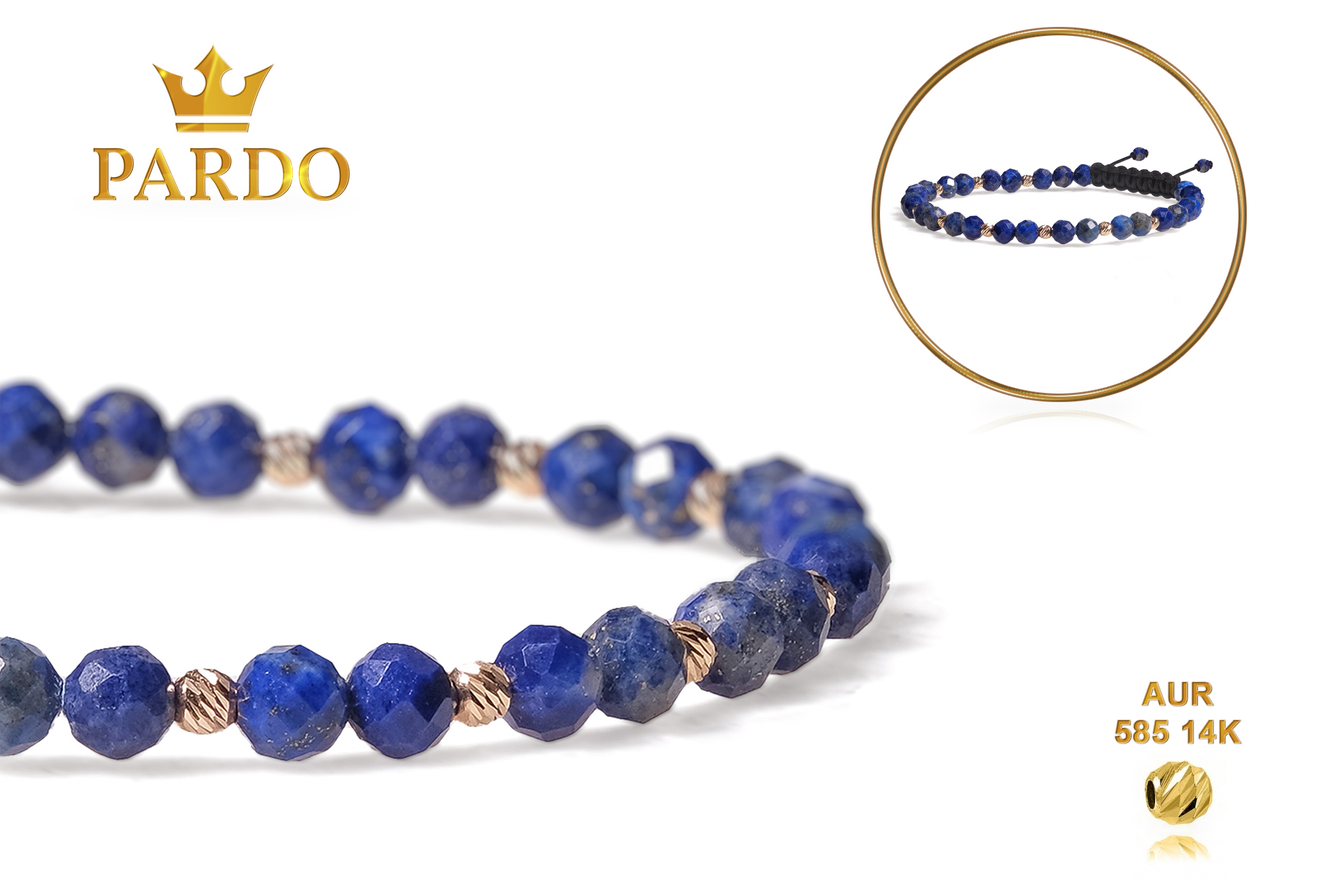 Bratara Snur Pardo realizata cu Lapis Lazuli Albastru si bile de Aur 585 14 Karate