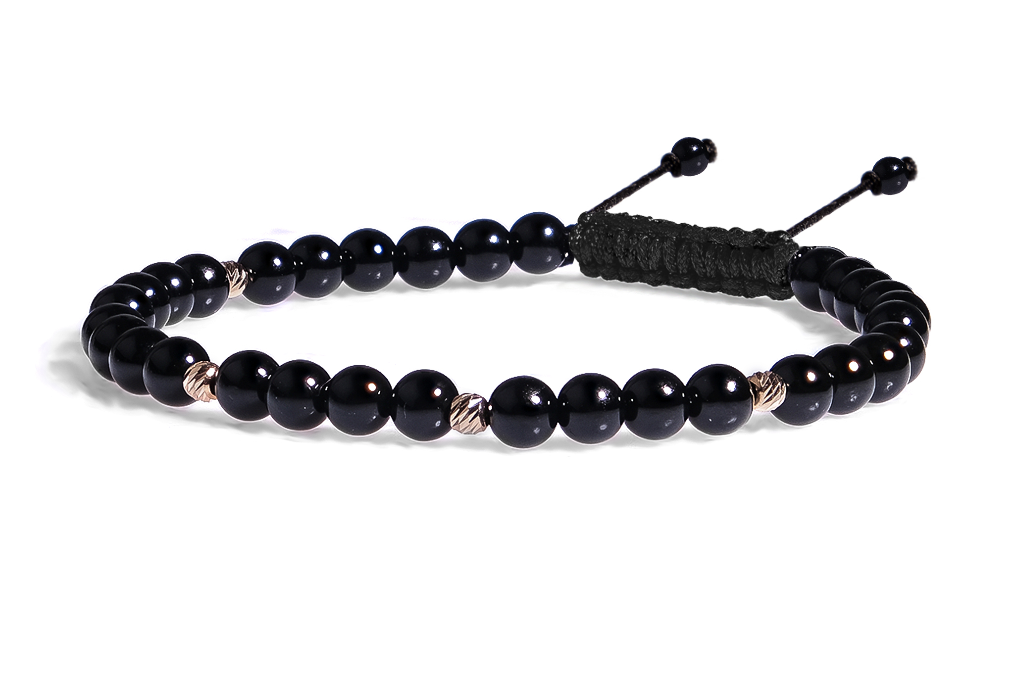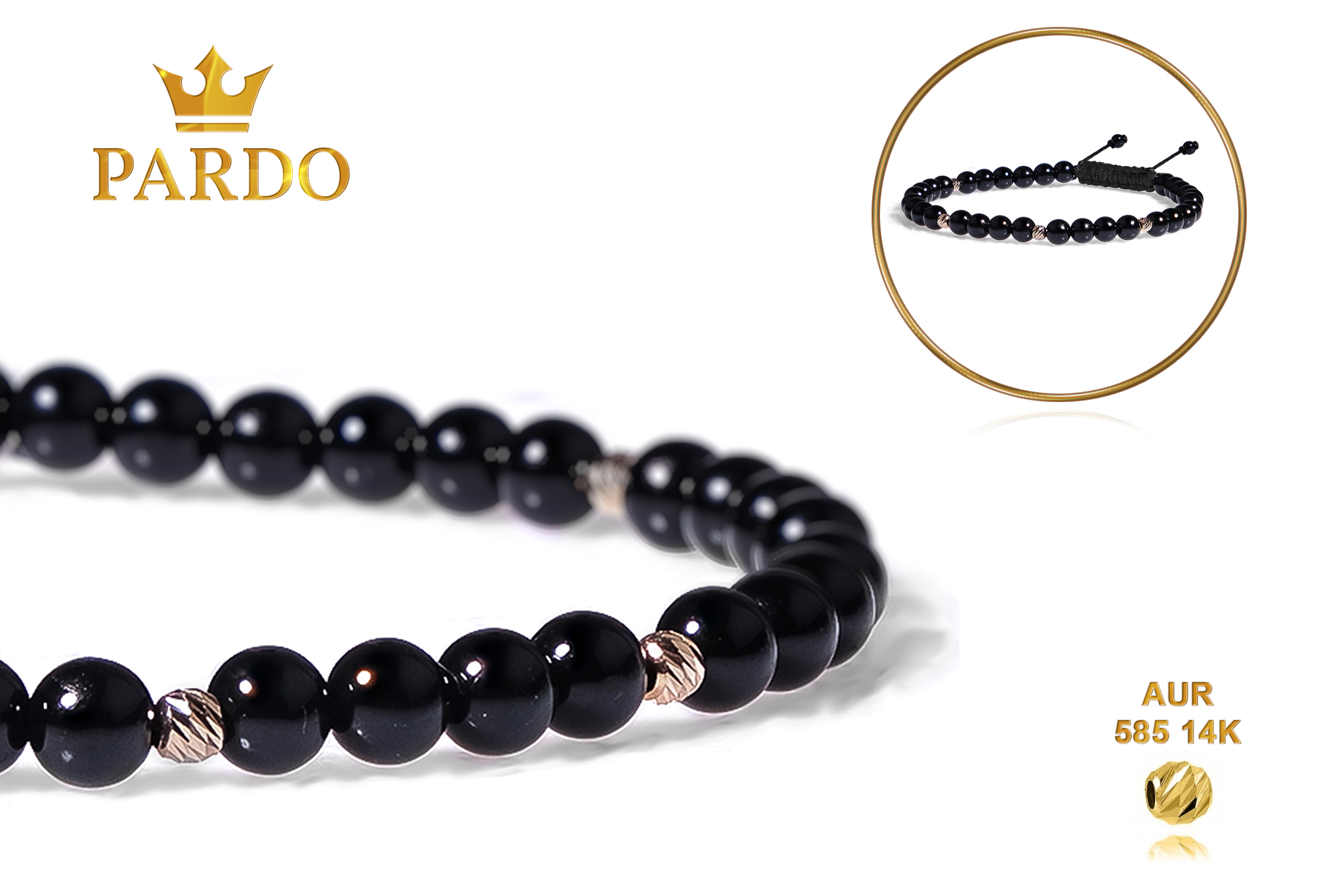 Bratara Snur Pardo realizata cu Onix Negru si sfere din Aur 585 de 14 Karate