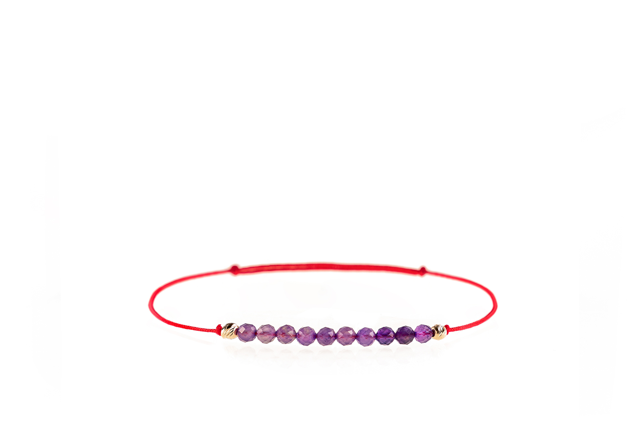 Brățară șnur roșu și bile Aur 585 14K & Ametist