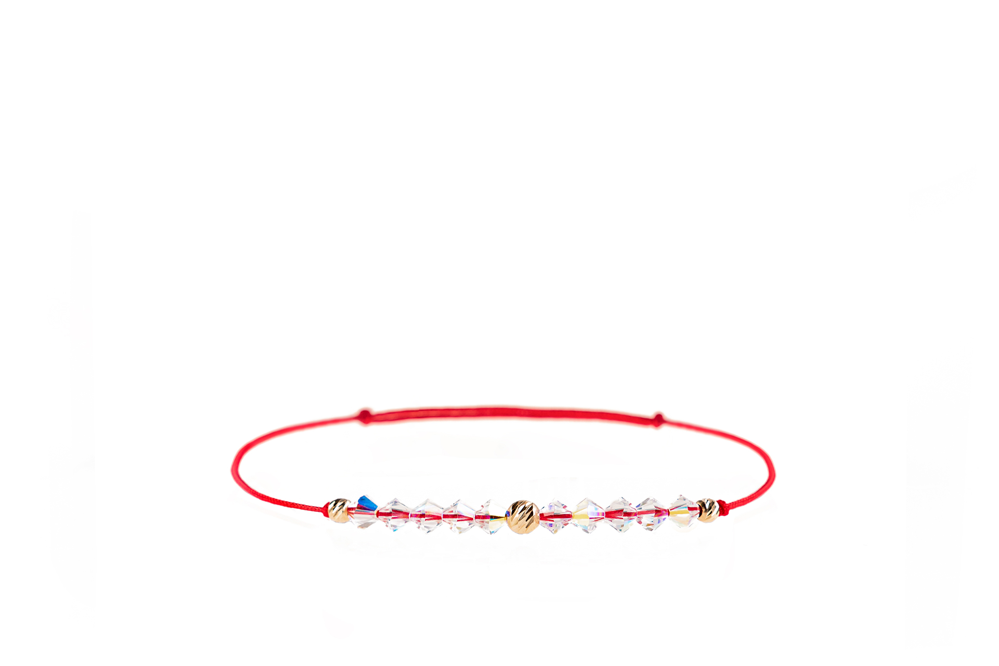 Brățară șnur roșu și bile Aur 585 14K & Cristale