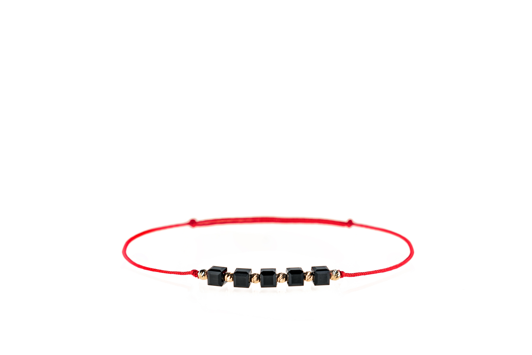 Brățară șnur roșu și bile Aur 585 14K & Cristale