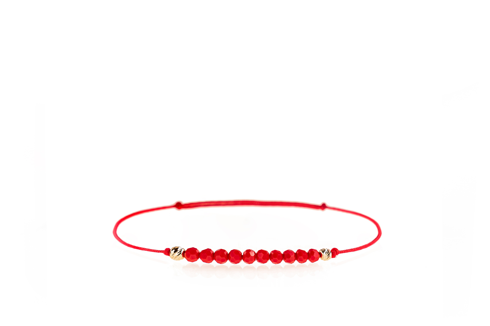 Brățară șnur roșu și bile Aur 585 14K & Cristale Sticla