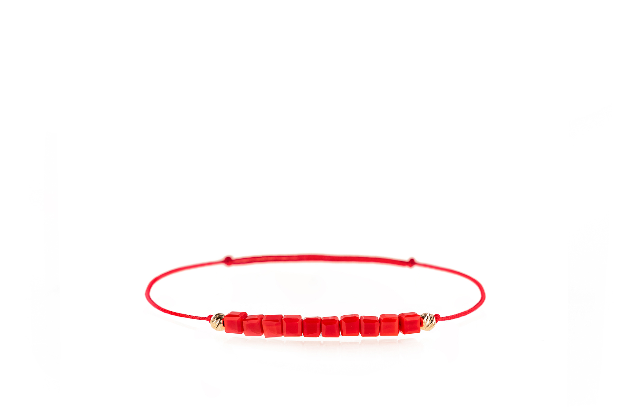 Brățară șnur roșu și bile Aur 585 14K & Cristale Sticla