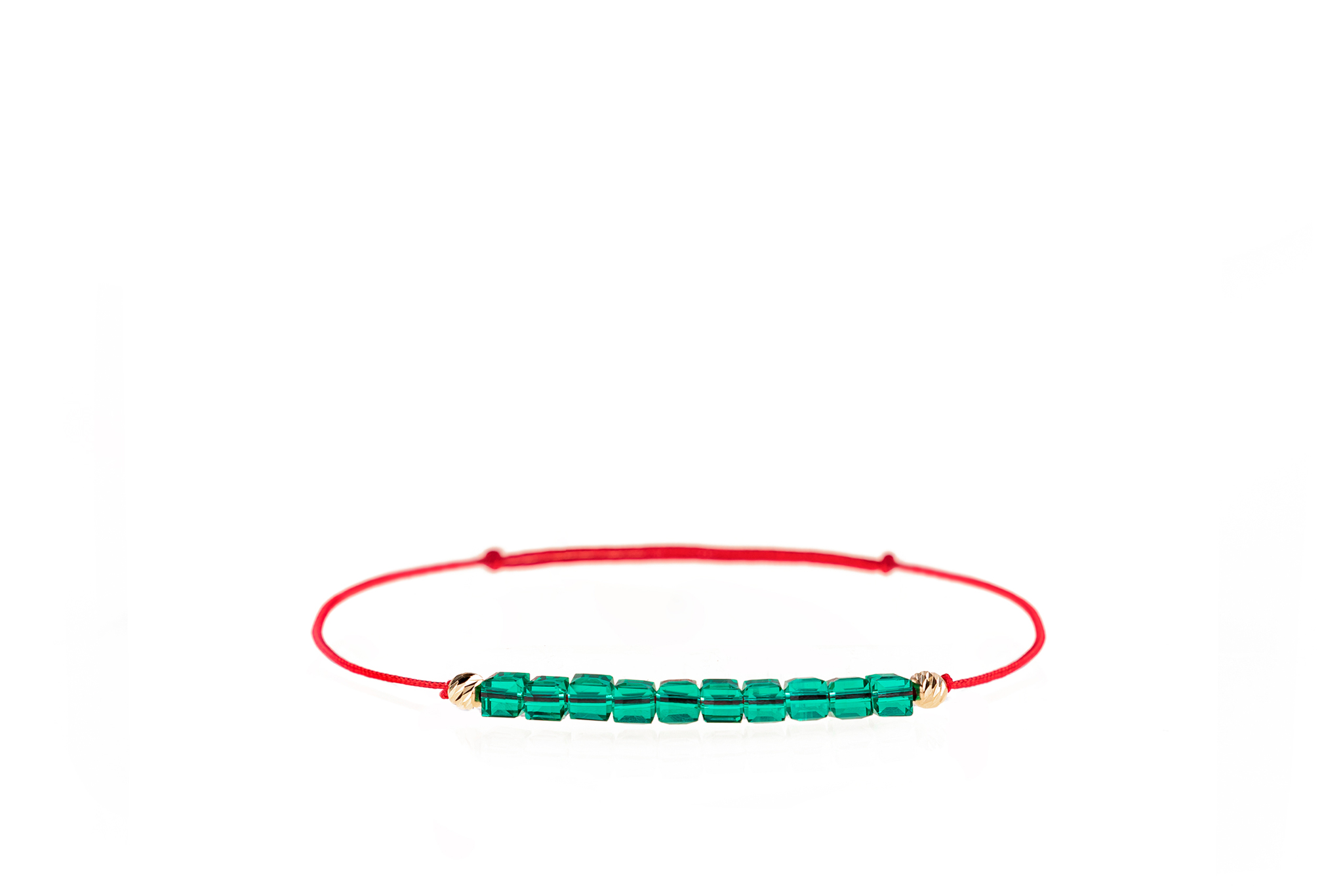 Brățară șnur roșu și bile Aur 585 14K & Cristale Sticla