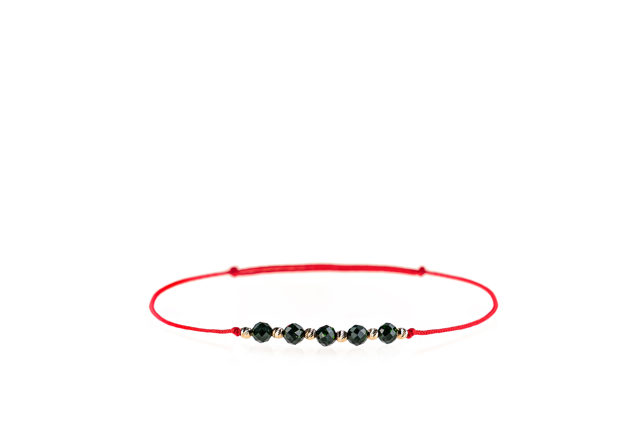 Brățară șnur roșu și bile Aur 585 14K & Piatra Soarelui