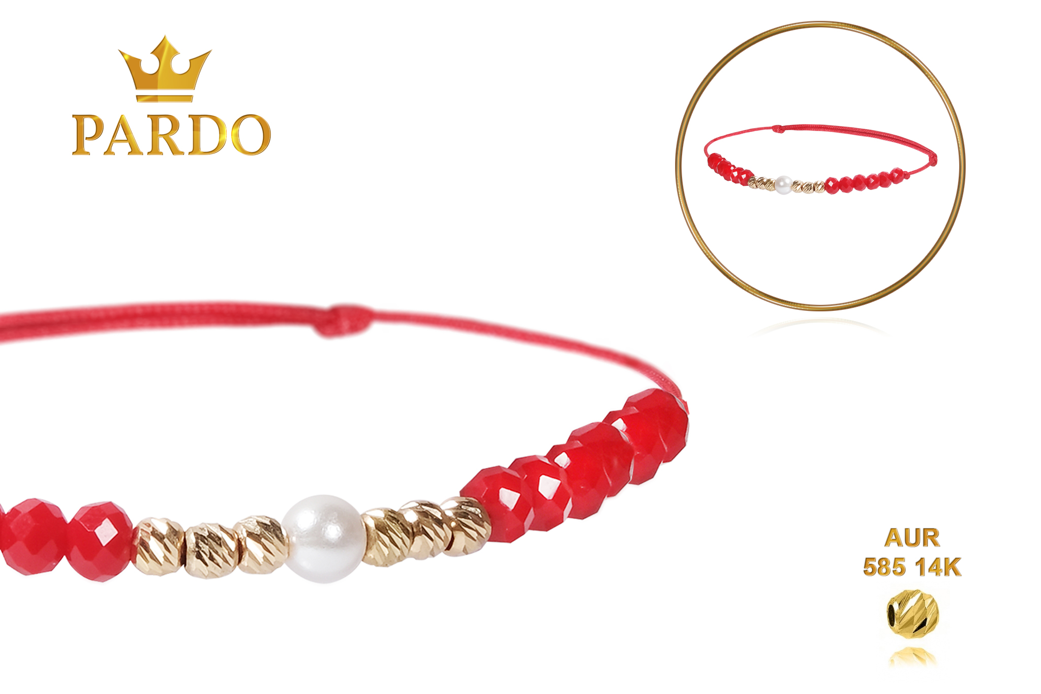Întreaga colecție de brățări din aur este realizată cu aur de 14 Karate, aur de import Italia, calitatea aurului fiind astfel la un nivel superior. Aurul de 14 Karate folosit pentru colecțiile Pardo Gold este verificat certificat de organele abilitate prin autorizația emisă, astfel acesta corespunde în proportie de 94% din punct de vedere al caratajului cât și al gramajului.