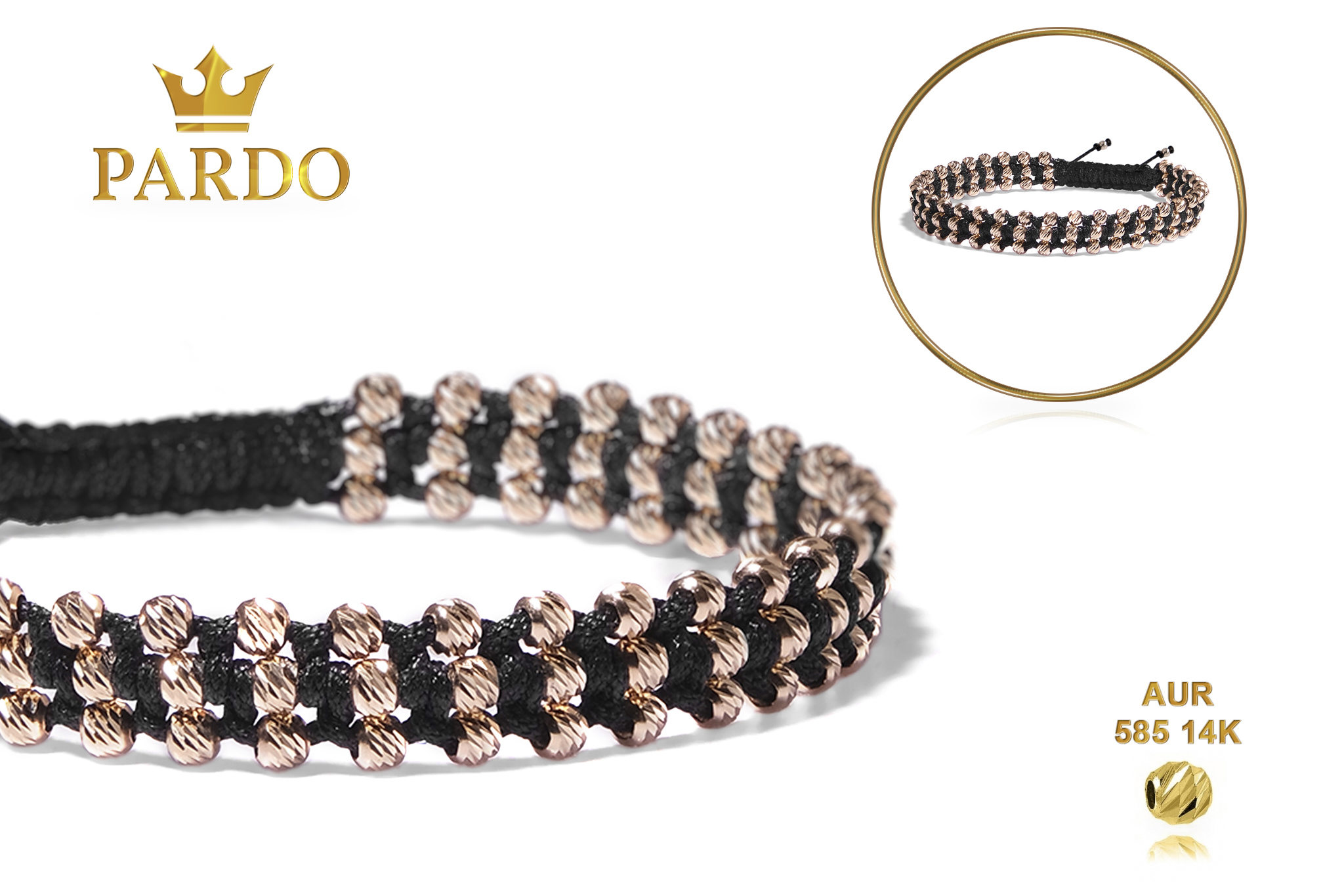 Întreaga colecție de brățări din aur este realizată cu aur de 14 Karate, aur de import Italia, calitatea aurului fiind astfel la un nivel superior. Aurul de 14 Karate folosit pentru colecțiile Pardo Gold este verificat certificat de organele abilitate prin autorizația emisă, astfel acesta corespunde în proportie de 94% din punct de vedere al caratajului cât și al gramajului.