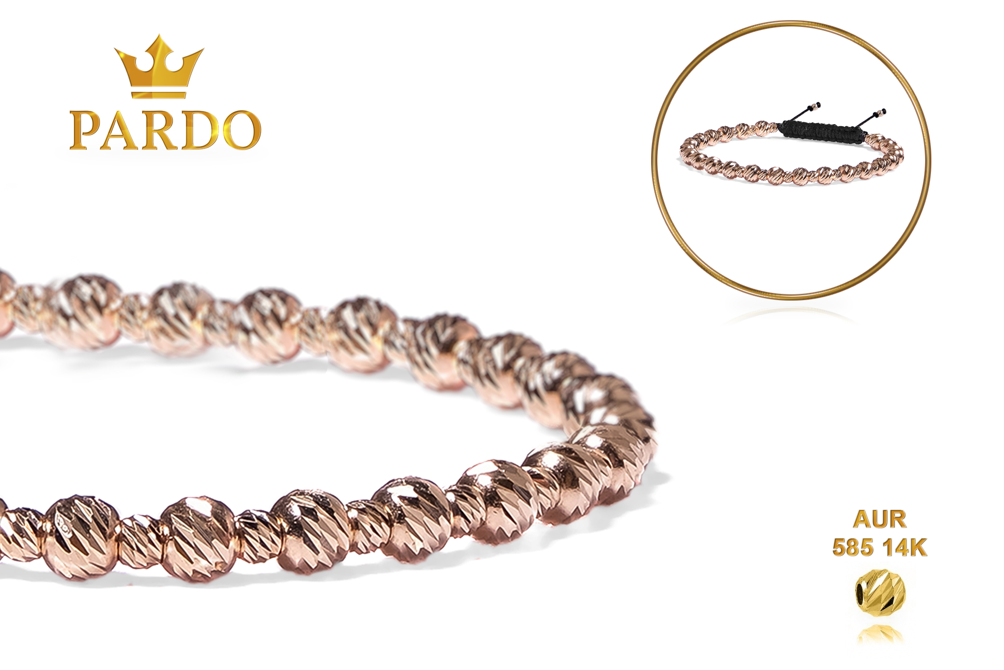 Întreaga colecție de brățări din aur este realizată cu aur de 14 Karate, aur de import Italia, calitatea aurului fiind astfel la un nivel superior. Aurul de 14 Karate folosit pentru colecțiile Pardo Gold este verificat certificat de organele abilitate prin autorizația emisă, astfel acesta corespunde în proportie de 94% din punct de vedere al caratajului cât și al gramajului.