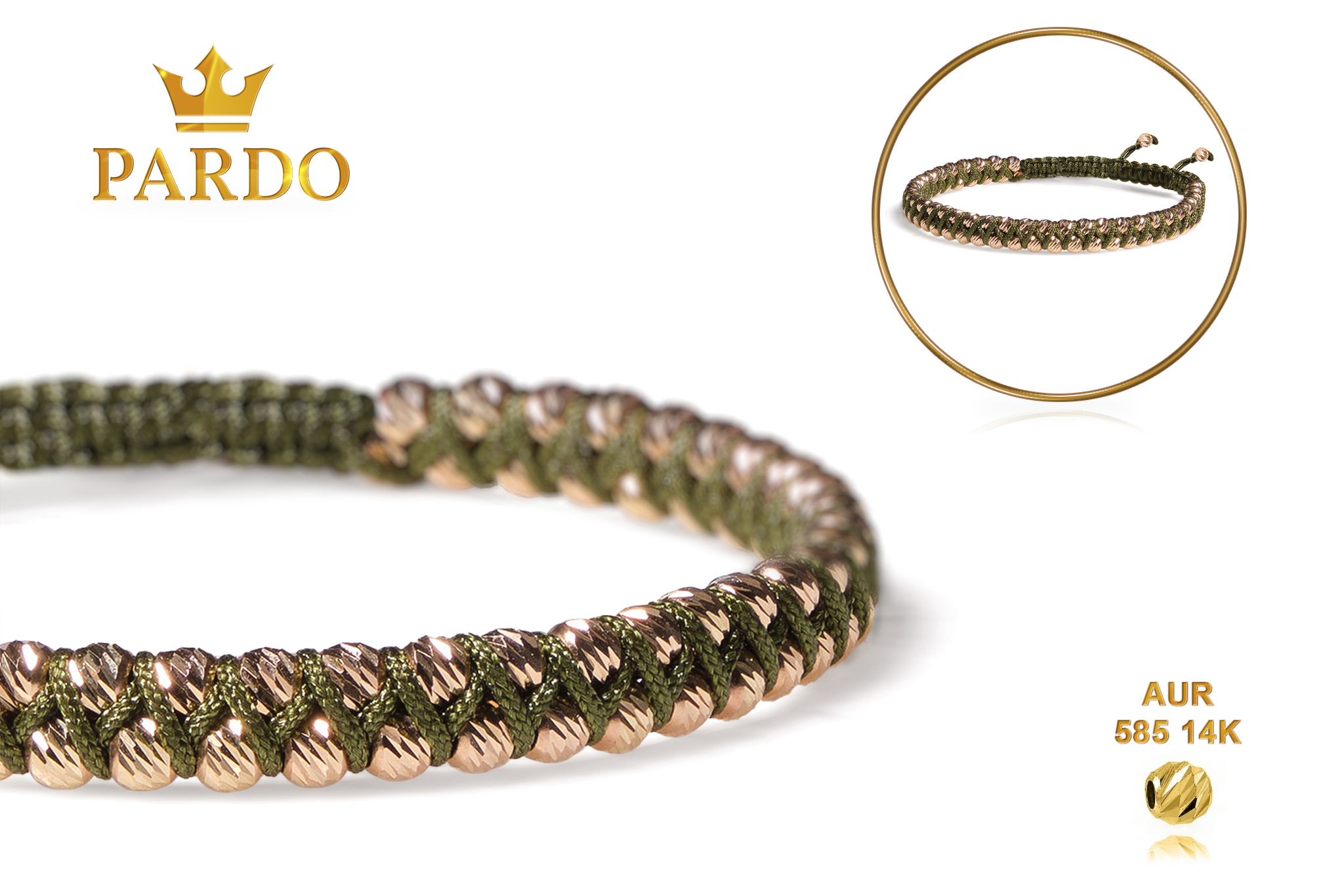 Întreaga colecție de brățări din aur este realizată cu aur de 14 Karate, aur de import Italia, calitatea aurului fiind astfel la un nivel superior. Aurul de 14 Karate folosit pentru colecțiile Pardo Gold este verificat certificat de organele abilitate prin autorizația emisă, astfel acesta corespunde în proportie de 94% din punct de vedere al caratajului cât și al gramajului.