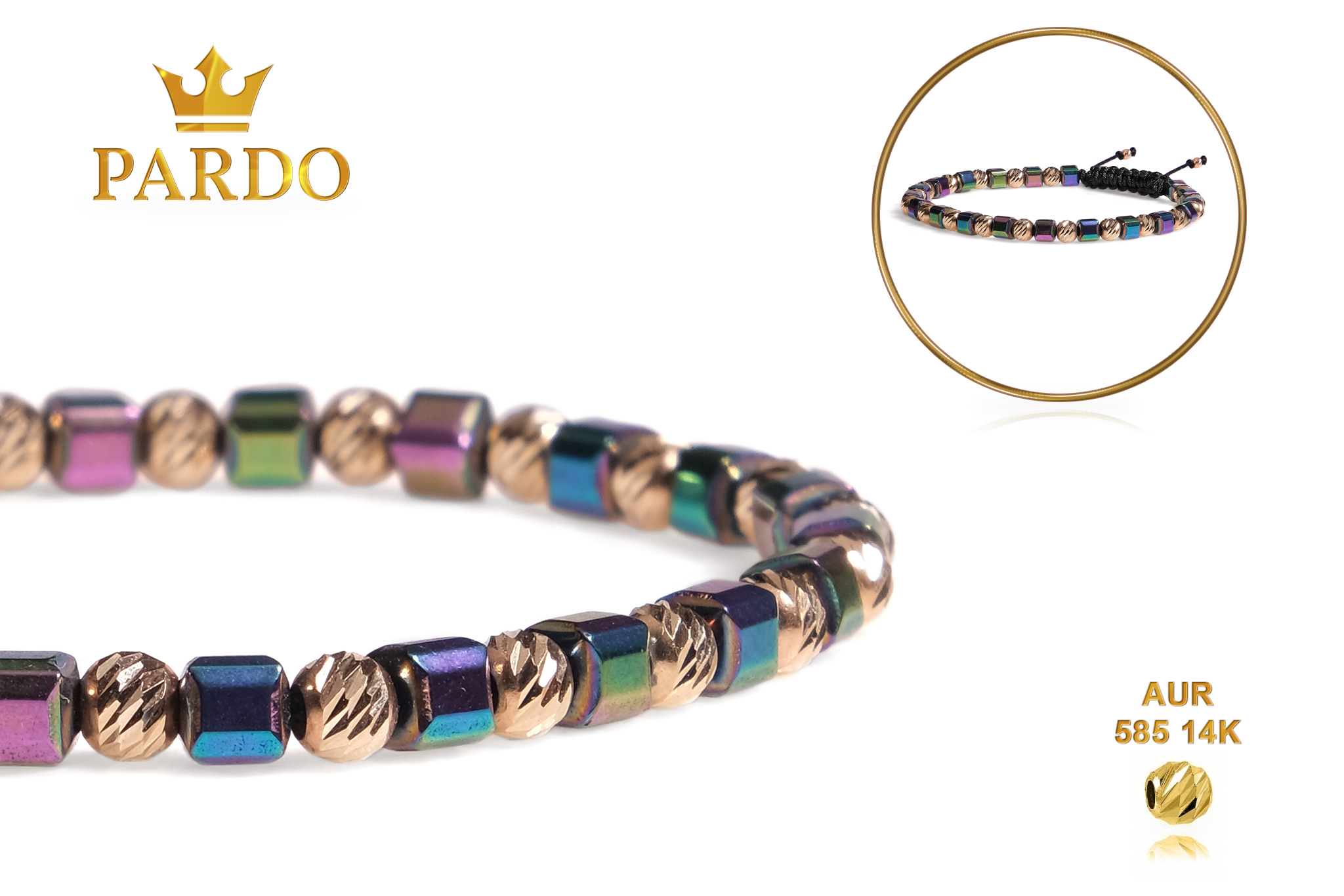 Întreaga colecție de brățări din aur este realizată cu aur de 14 Karate, aur de import Italia, calitatea aurului fiind astfel la un nivel superior. Aurul de 14 Karate folosit pentru colecțiile Pardo Gold este verificat certificat de organele abilitate prin autorizația emisă, astfel acesta corespunde în proportie de 94% din punct de vedere al caratajului cât și al gramajului.