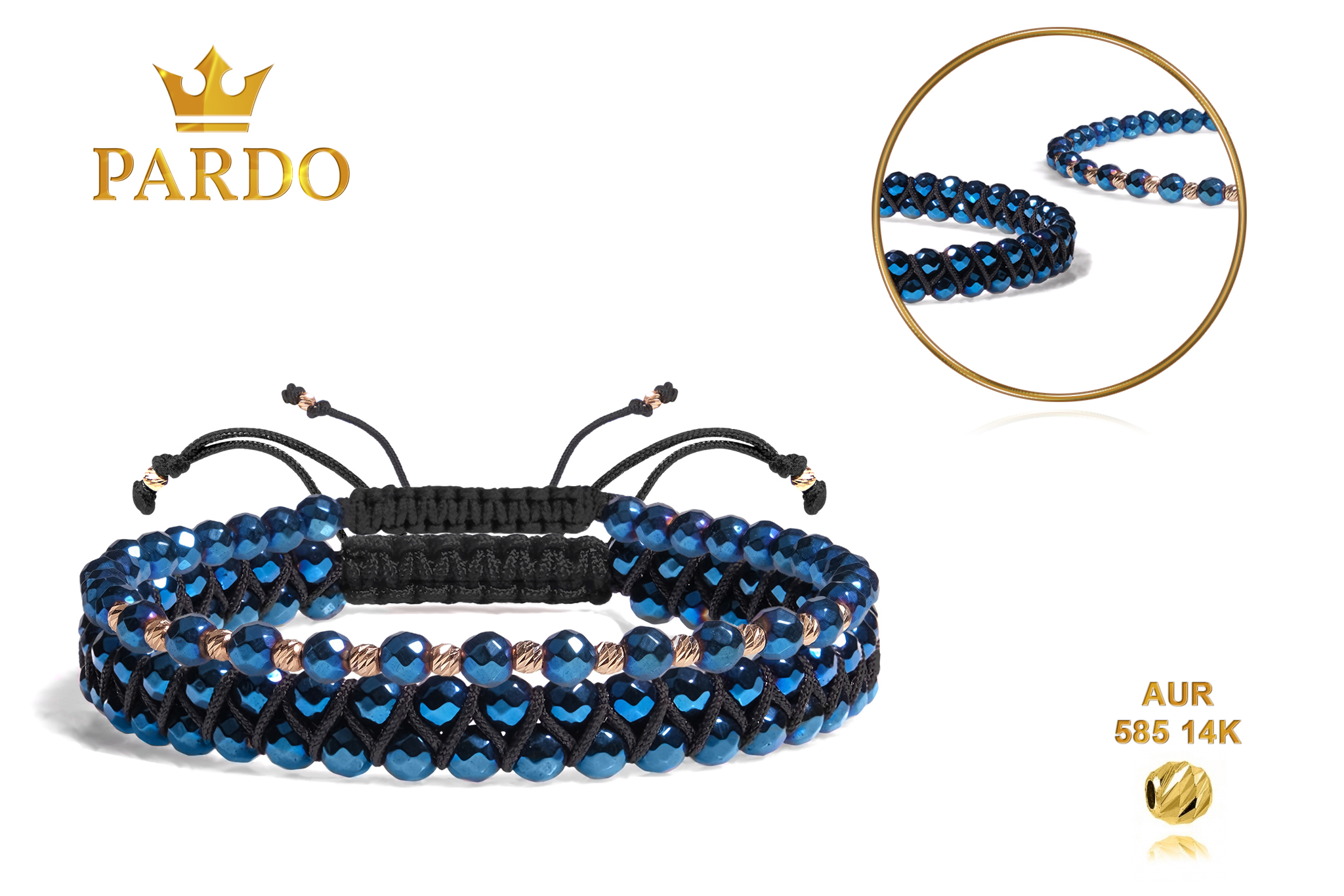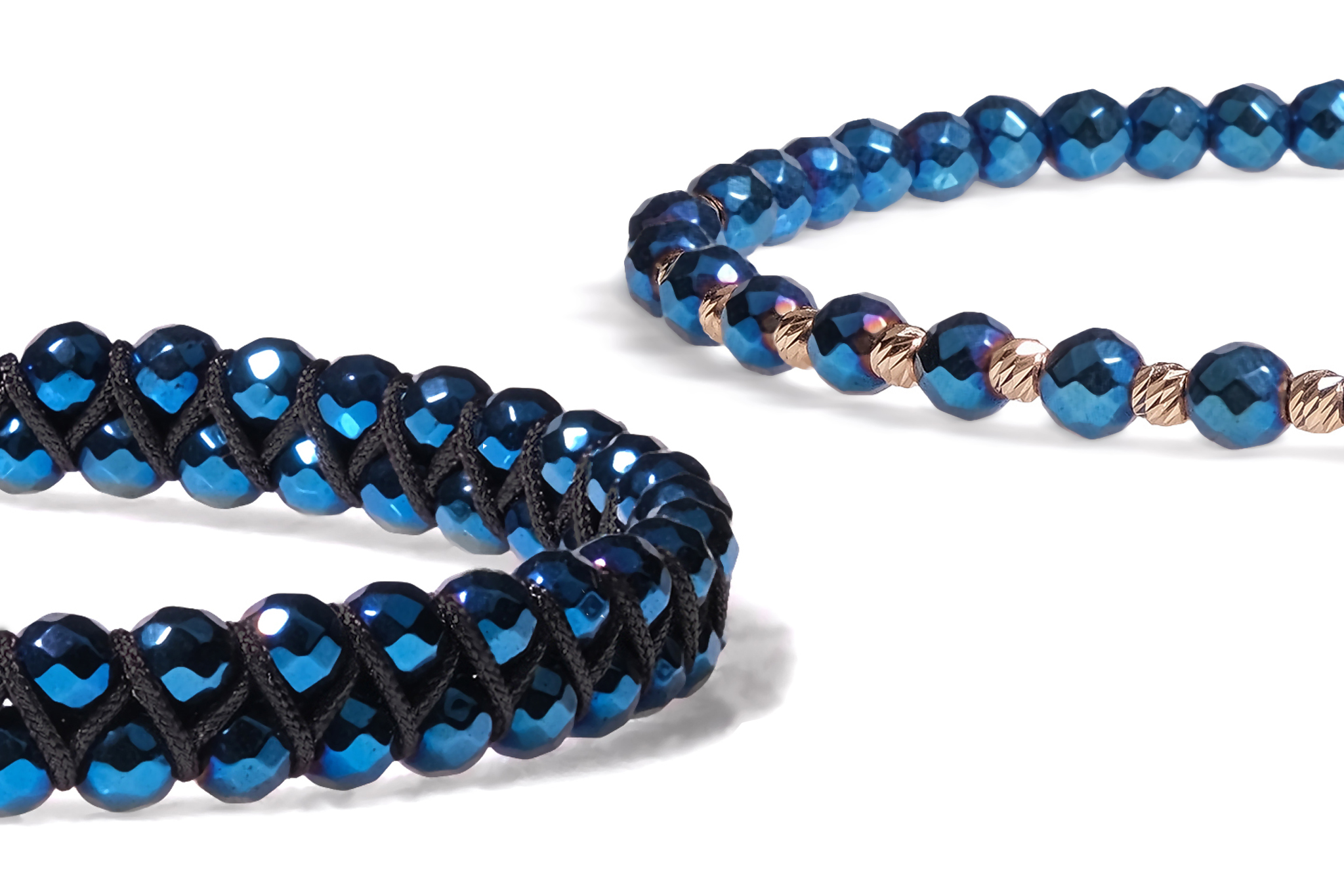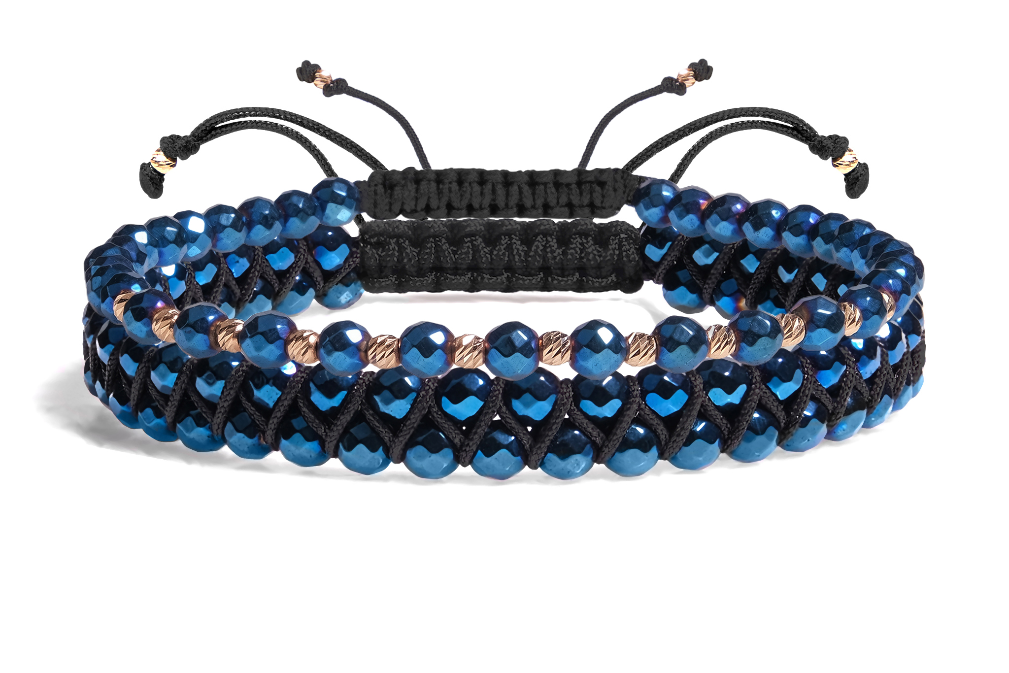 Set Brățări Pardo din Aur de 14K & pietre semiprețioase Hematit Albastru de 4 mm