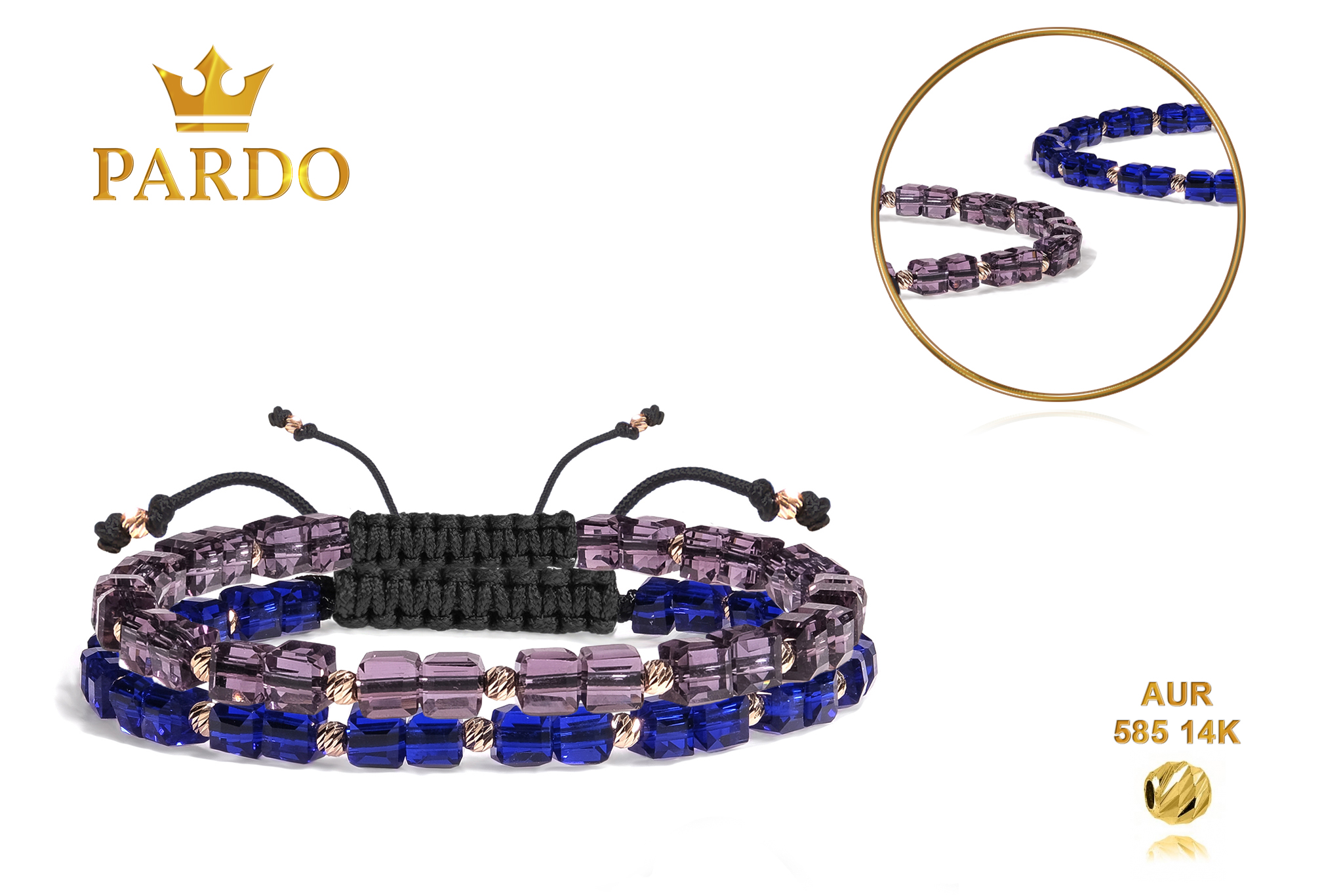 Întreaga colecție de brățări din aur este realizată cu aur de 14 Karate, aur de import Italia, calitatea aurului fiind astfel la un nivel superior. Aurul de 14 Karate folosit pentru colecțiile Pardo Gold este verificat certificat de organele abilitate prin autorizația emisă, astfel acesta corespunde în proportie de 94% din punct de vedere al caratajului cât și al gramajului.