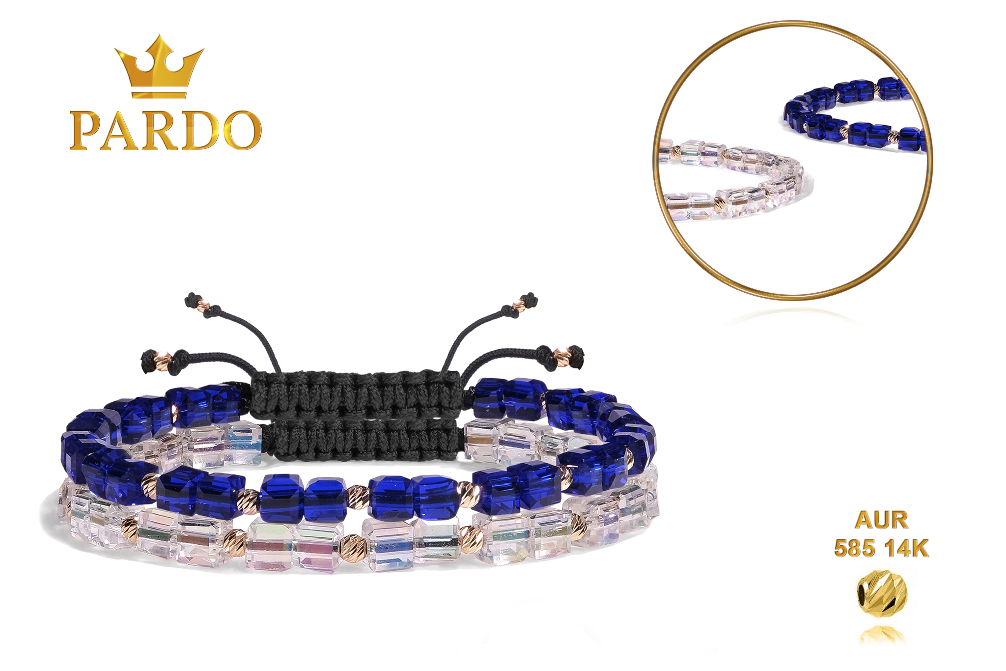 Întreaga colecție de brățări din aur este realizată cu aur de 14 Karate, aur de import Italia, calitatea aurului fiind astfel la un nivel superior. Aurul de 14 Karate folosit pentru colecțiile Pardo Gold este verificat certificat de organele abilitate prin autorizația emisă, astfel acesta corespunde în proportie de 94% din punct de vedere al caratajului cât și al gramajului.