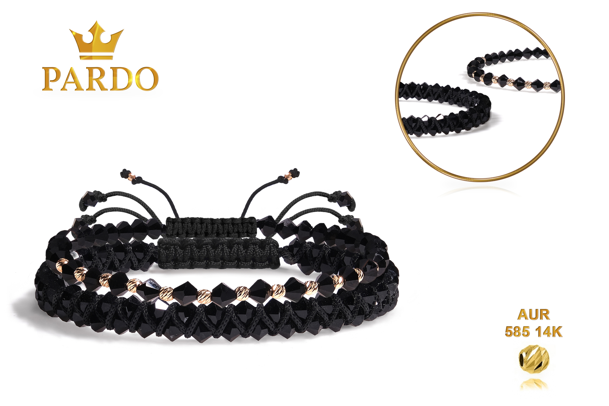Întreaga colecție de brățări din aur este realizată cu aur de 14 Karate, aur de import Italia, calitatea aurului fiind astfel la un nivel superior. Aurul de 14 Karate folosit pentru colecțiile Pardo Gold este verificat certificat de organele abilitate prin autorizația emisă, astfel acesta corespunde în proportie de 94% din punct de vedere al caratajului cât și al gramajului.